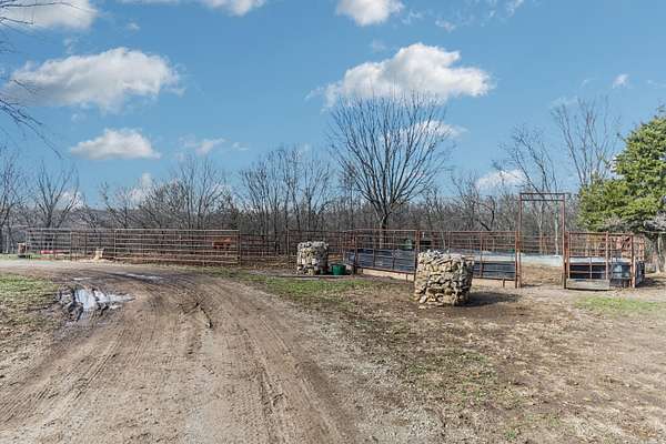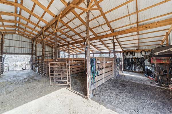 Horse-Ready Farmstead on 25 Private Acres. This remarkable 25-acre rural homestead delivers a rare blend of spacious living, equestrian amenities, agricultural functionality, and outdoor recreation. This home features generously sized rooms and a versatile floor plan ready for modernization, restoration, or creative redesign. Perfect for horse owners and equestrian enthusiasts, the property features a dedicated 60x50 horse barn equipped with multiple dirt-floor stalls, concrete walkways, and a concrete floored valuable covered exterior tie area-the ideal all-weather space to tack up, saddle, groom, and secure horses. The exterior covered stalls provide shade and shelter for tying horses before and after rides. Additional fenced pens and covered livestock structures further expand the property's flexibility for horses, cattle, goats, poultry, and small animals. The home has previously been used in a simplified, utility-free manner, but electrical panels, breaker boxes, and the wiring framework all remain in place. The wiring has been cut at connection points; however, the existing system can be restored to working condition with straightforward reconnection. Plumbing lines remain intact, though toilet fixtures have been removed. The septic system was professionally pumped in July 2024, and the property includes an outhouse tied into the septic tank for convenience during renovations. The land itself offers outstanding diversity for both productivity and recreation: Open pasture for horses, grazing, or future development. Partially wooded acreage ideal for hunting, wildlife habitat, and trail creation. Recreation-ready terrain suitable for hunting blinds, hiking, and seasonal creek exploration. Bring your vision, your boots, and your horsesthis one is built for lifestyle.