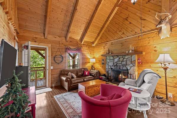 Welcome to 4515 Tolbert Road, where mountain living meets total privacy. Set on 13.56 acres directly bordering Pisgah National Forest, this fully furnished, handcrafted log cabin offers an extraordinary combination of seclusion, comfort, and connection to nature. Whether you're searching for a weekend hunting retreat, a mountain getaway, or a full-time home surrounded by peace and wildlife, this property delivers it all. The home blends authentic log cabin craftsmanship with modern amenities. The cozy living room centers around a wood-burning fireplace, creating the perfect atmosphere for cool mountain nights. The open kitchen and living area make entertaining effortless, featuring a gas range, microwave, refrigerator, and convection oven. The main-level bedroom offers easy access, while the spacious loft above provides flexible space for an office, guest area, or sleeping loft with elevated forest views. The finished basement with a full bath adds valuable living space, ideal for a recreation room, guest suite, or home gym. A whole-home generator ensures uninterrupted comfort, and the home's spring-fed and well water system enhances the self-sufficient lifestyle that this property provides. Step outside and experience the peace and privacy that only nature can offer. Expansive mountain views, a covered porch with hot tub, and a rear deck overlooking the forest create an inviting space to relax and unwind. The fire pit area invites evenings under the stars, surrounded by the sounds of nature. Deer, bear, and other wildlife are regularly seen on the property, this land is truly a haven for hunters, outdoor enthusiasts, and anyone seeking space to roam freely. Practical amenities support the mountain lifestyle without sacrificing comfort: Detached garage ideal for a workshop or storage Detached carport for additional parking Fiber optic internet for remote work or streaming in total privacy Metal roof and insulated doors/windows for durability and efficiency Located at an elevation between 2,500-3,000 feet, this property offers cooler summer temperatures, crisp air, and the soothing sounds of a nearby creek and natural waterfall. The land features a mix of cleared areas, forested trails, and sloped mountain terrain, perfect for exploring, hunting, or simply enjoying your own private piece of Western North Carolina. Whether you're starting your day with coffee on the porch, spending afternoons hiking Pisgah, or ending evenings by the fire, this property captures the essence of mountain living. The views, the quiet, the privacy, it's everything you've been searching for, and more. 4515 Tolbert Road isn't just a home, it's an experience. A private retreat. A place where adventure meets serenity.