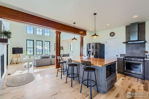 Incredible opportunity to own this carefully constructed, custom built home designed by local architect Brian Majeski, Rural/Urban Design! Nestled on over 5 picturesque acres of rolling pastures, dramatic rock outcroppings, & sweeping 360' views, the home was designed with 5 spacious bedrooms, a large recreation room (with walk-in closet), 4 full baths, & a spectacular walk-out basement with a serene private patio. Stacked windows & soaring ceilings compliment the open concept floor plan & beautiful modern finishes. Custom Tharp cabinets, Jon Boos island, & site-finished hickory floors throughout demonstrate fine attention to detail. The spacious primary has a 5-piece bath, 2 walk in closets, & its own private balcony. Don't miss the charming loft in the second upstairs bedroom or the huge bonus space above the garage. (Included in square footage as 621 sqft of unfinished space with no heat source.) Incredible views from every window & a lovely wrap around deck bring the outdoors in. Outside you will find usable acreage & multiple choices to enjoy your land. Unwind on your front porch, the private balcony off the primary bedroom, the main level decking, or the lovely patio off the walk out. Horses are welcome for the equine lover! Remarkable unique rock outcroppings provide an amazing area for camping, relaxing around the fire, or watching the sunset over the mountains. Incredible potential to build something amazing on the rock ledge and expansive grounds or put in a barn or outbuildings. The property is fully fenced to keep pets & horses in. An oversized 3 car garage, insulated finished walls, will fit your cars, bikes, boards, & more. Perfectly located just minutes from both Old Town Fort Collins, Horsetooth Reservoir, & the scenic Poudre Canyon, this property offers the perfect blend of convenience & tranquility whether you're seeking entertainment & shopping or outdoor adventures. The best Northern Colorado has to offer!