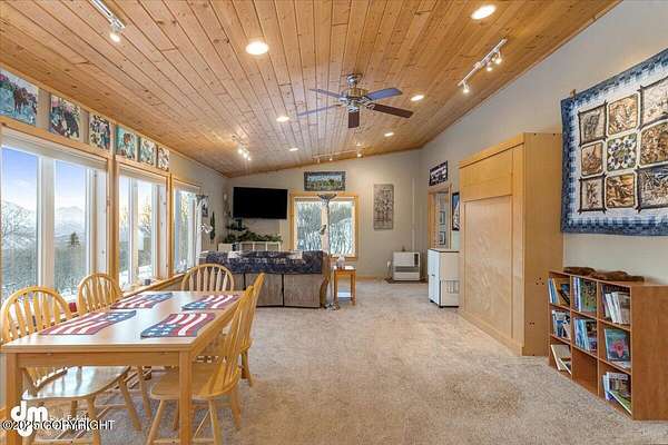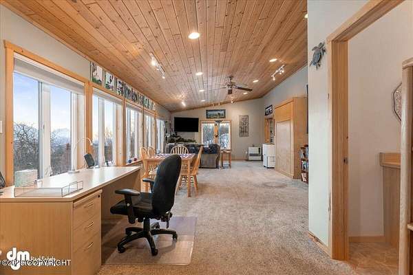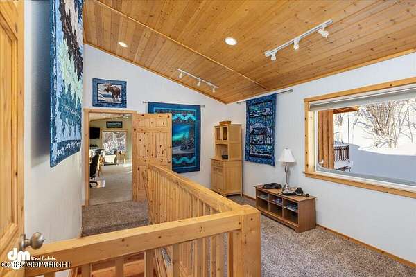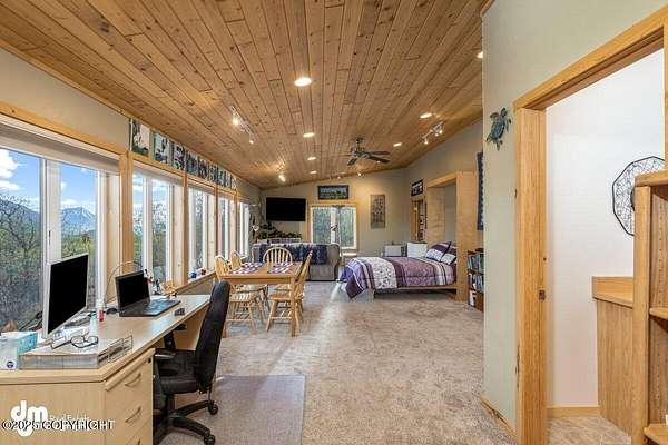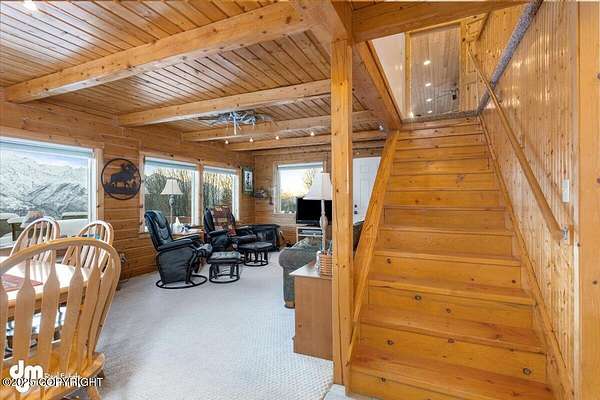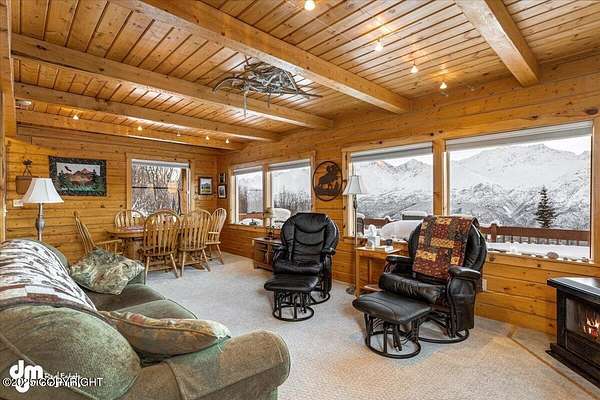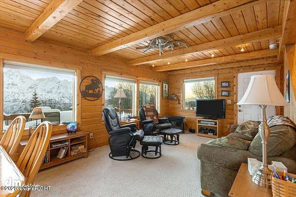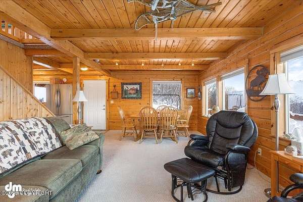 It's a 2 br/2ba 2200 sqft home on 14+ acres, where you can quite literally feast your eyes on the mighty Chugach out your front window, and walk/ski/snowmachine/ATV into the Talkeetnas out your back door. The original log home was built in 2005, and completely remodeled and expanded in 2012, with the addition of the garage and two large family rooms above it. Currently used as office, family, and exercise spaces, these rooms could easily be converted into one or two additional bedrooms, or a generous primary suite. Maintenance and finishes have been meticulous throughout the current owners' tenure, as you will tell when you walk in the door. The oversize 2-car garage has plenty of extra room for work areas or storage, and the shed outside is sized to store snow machines, ATVs, and all kinds of outdoor equipment.