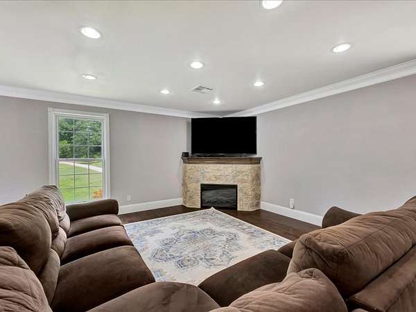 This sizable home has 5-bedrooms and 3 updated bathrooms. There is also a home office that could be used as a 6th bedroom. The primary bedroom and bathroom are located downstairs as well as the home office. Upstairs you will find 4 bedrooms, 1 bathroom and a separate dressing/vanity area. Also, upstairs you will enjoy a large game room, complete with a wet bar and electric fireplace. The kitchen offers plenty of counter and cabinet space. With double ovens and a roomy pantry. As well as a separate dining room. Relax in the cozy living room that features a wood-burning fireplace, providing a warm and welcoming atmosphere. Outdoor enthusiasts will love the impressive 25x45 inground pool, perfect for those hot summer days. The property also includes a greenhouse with raised beds. Enjoy a beautifully maintained, irrigated lawn, perfect for play and relaxation. All of this located conveniently between Lufkin and Nacogdoches. Located next to Woodland Hills Golf Course!!