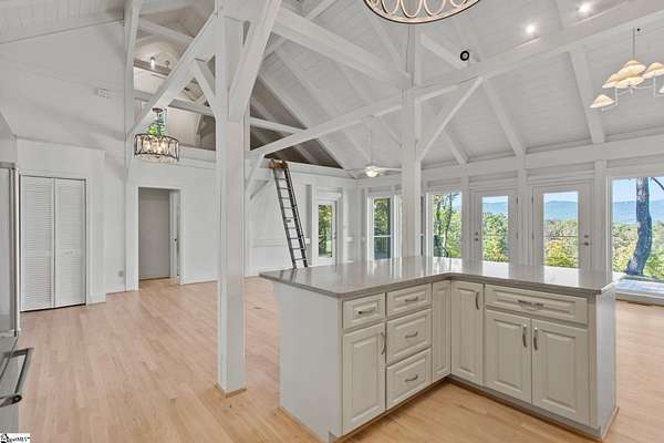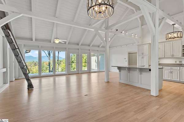 PERFECT MULTI GENERATIONAL LIVING HOME!!! It's stunning 3,600+ sq. ft. Newly renovated home sits on over 2 acres in a peaceful country setting off Hawkins Road. Designed with a beautiful lighting package, this home offers a warm and inviting atmosphere. Located just 25 minutes from the charming town of Travelers Rest and the Swamp Rabbit Trail, and less than 15 minutes from North Greenville University, this home provides both convenience and tranquility. Featuring three bedrooms, four baths, and a spacious two-car garage, this home is designed for comfort and style. Step outside to an oversized covered screen porch, perfect for outdoor entertaining and taking in the magnificent glassy mountain view. Don't miss your chance to make this beautiful home yours today! AND LETS NOT FORGET HE SHED OR SHE SHED!!!! Plumbed and ready for secondary Kitchenette in the Inn-law suite.