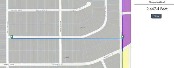 Head east on Jennifer (between the water tanks) off of Unser Blvd. Turn right (north) on Westphalia Blvd, turn right (east) on Majesty, then a left (north) on Villanuella Rd and right (east on Patricia Rd NE. First lot on south side of street.