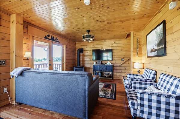 Welcome to 452 Armstrong Road, a stunning log cabin retreat with panoramic views of Seneca Lake, nestled on over 2 acres in the heart of the Finger Lakes. This beautifully crafted home blends rustic charm with modern comfort, featuring three bedrooms, two and a half baths, central air, hardwood floors, and a fully finished walk-out basement complete with a play area-ideal for families or entertaining guests. Whether you're seeking a peaceful year-round residence or a high-performing vacation rental, this property delivers. The open-concept living space extends to a spacious deck where you can take in breathtaking lake and countryside views. Just 5 miles south of Geneva and 25 miles north of Watkins Glen, you'll enjoy close proximity to wineries, restaurants, boating, golf, hiking, and charming small-town amenities. 452 Armstrong is also available as part of a turnkey rental portfolio with neighboring homes in the subdivision an exceptional opportunity for investors or lifestyle buyers.
