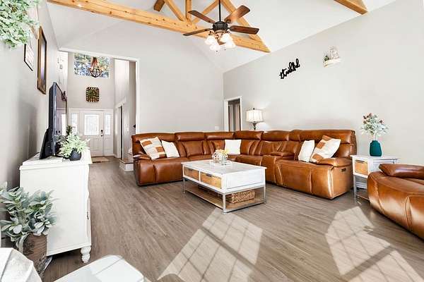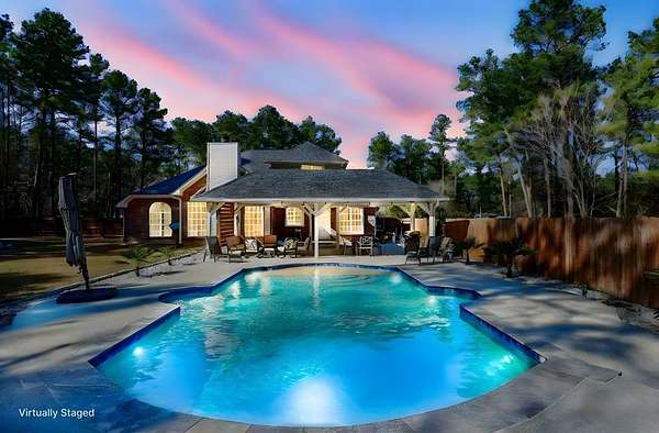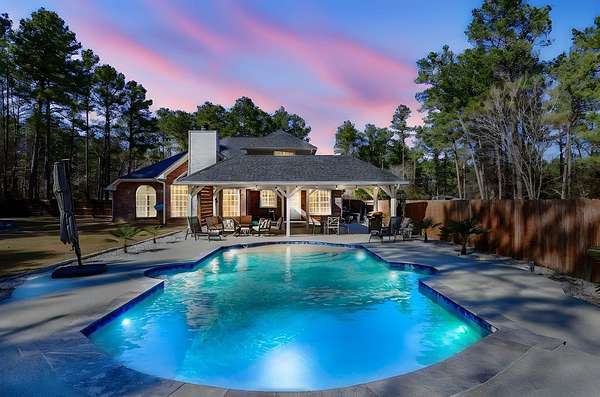 Est $2,534/moEverything you need on a 2.51 acre lot. 4 BR/2.5BA. First floor Master Suite, Family room with vaulted ceilings. Nice breakfast room with a beautiful view of the pool. A beautiful island kitchen with granite countertops. 3BR and 1 full Bath upstairs. Neutral colors throughout the home. A wonderful backyard retreat that is private on all sides. Amazing salt water swimming pool with waterfall and covered patio make entertaining a breeze! Fenced backyard and covered RV parking with a concrete drive and a nice storage building with electricity. Schedule a showing today because this listing will not last long.
