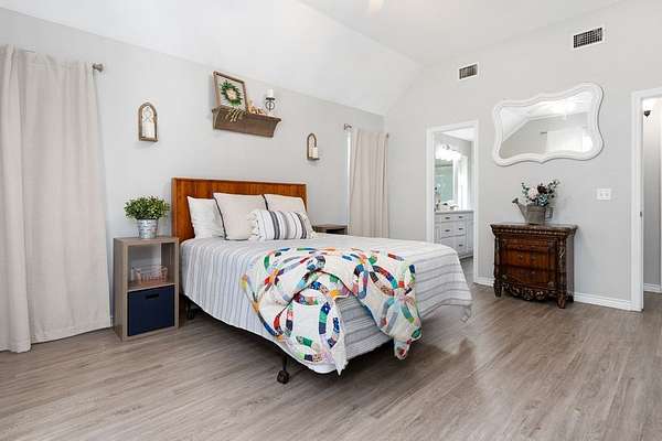 - Alarm System, Breakfast Bar, Ceiling Fan(s), Island Kitchen, Lower Level Master, Pantry, Smoke Detector, Vaulted Ceilings, Woodburning Fireplace