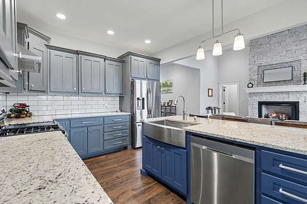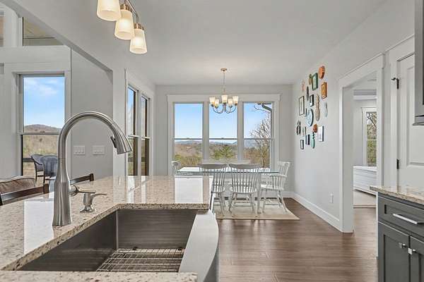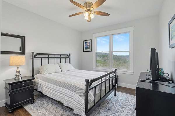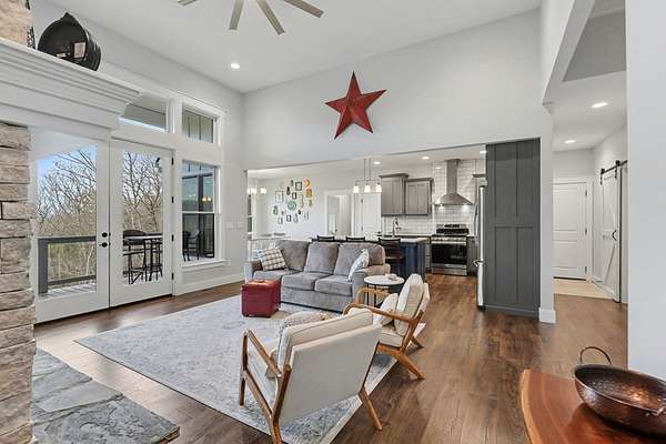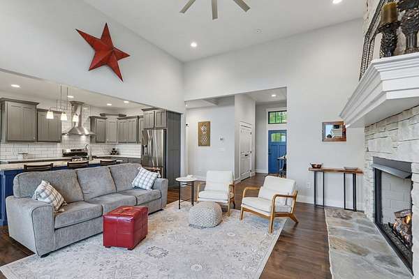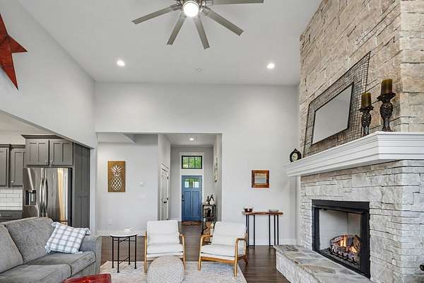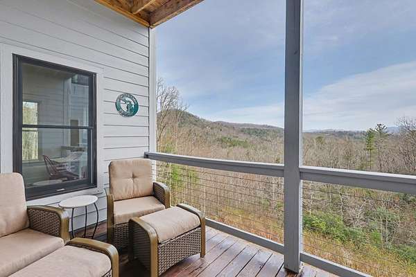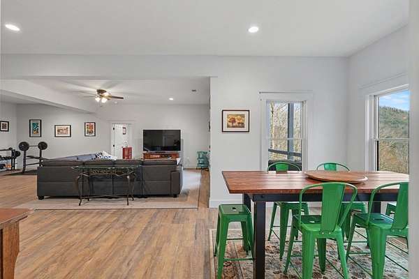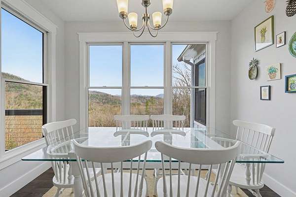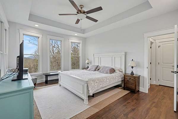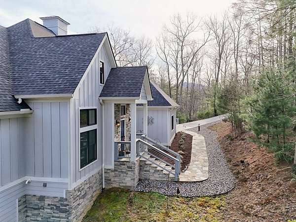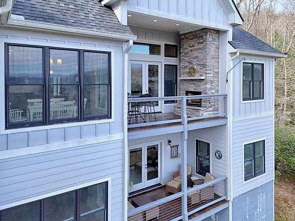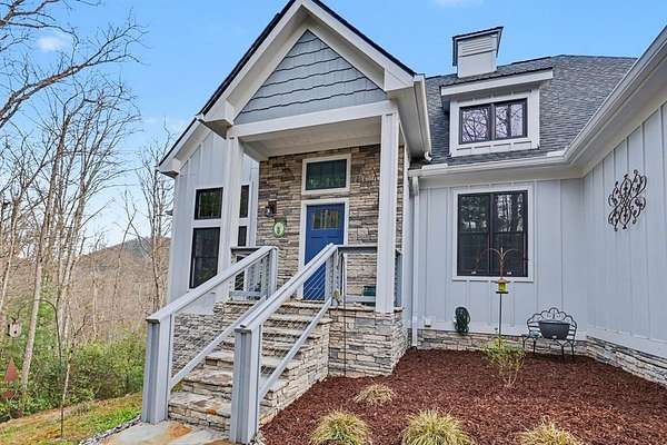 Craftsman-style beauty in the heart of the highly sought-after Owltown area of Blairsville! This one-owner 2022 home offers over 3,800 square feet of beautifully finished living space with 5 bedrooms, 4 full baths, and year-round layered mountain views in a private 1.5-acre wooded setting. Designed for easy one-level living, the main floor features 3 bedrooms, 2 full baths, a split-bedroom floor plan, a gorgeous open great room with cathedral ceilings, abundant windows, natural light, and a vented gas log stacked stone fireplace. The chef's kitchen is a dream with custom cabinetry, granite countertops, and a walk-in pantry, while the fabulous dining room is wrapped in windows to bring the outdoors in. The spacious main-level primary suite offers a stunning tile shower, freestanding soaking tub, double vanities, and a large walk-in closet with custom shelving. A mudroom, laminate flooring, tile, high-end finishes, oversized two-car garage, and huge concrete parking area add everyday convenience. The full finished terrace level features additional bedrooms and baths, a second family room, and a wet bar—perfect for entertaining or accommodating guests—along with ample storage and a covered porch to take in the cool mountain breeze. The main covered deck with a second stacked stone vented gas log fireplace is ideal for enjoying all four seasons. Located in an upscale community with paved roads, underground power, public water, high-speed internet, and a minimal $150 annual HOA fee, this show-stopper is just minutes from Vogel State Park, vineyards, hiking, and the United States National Forest.