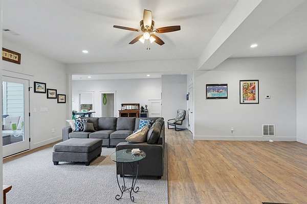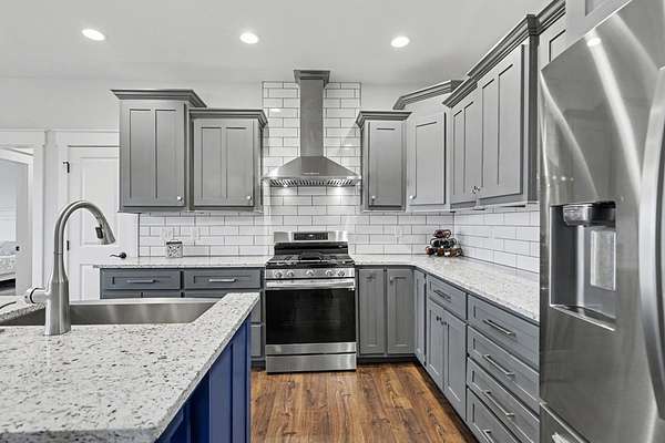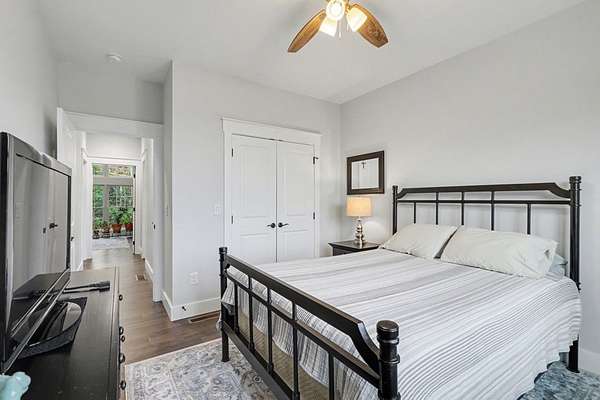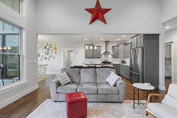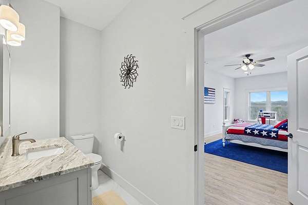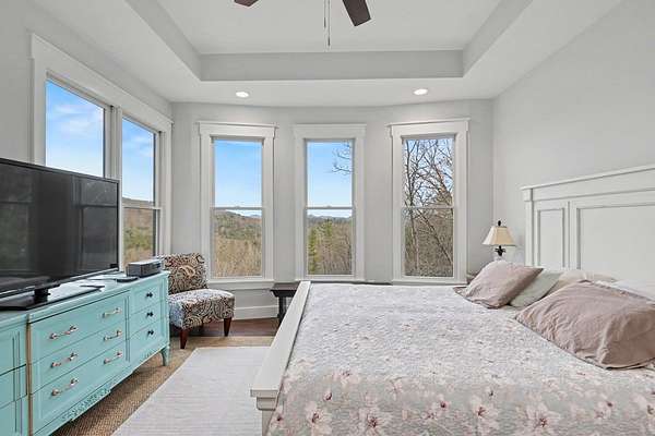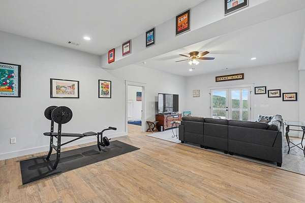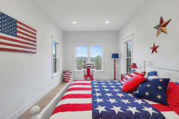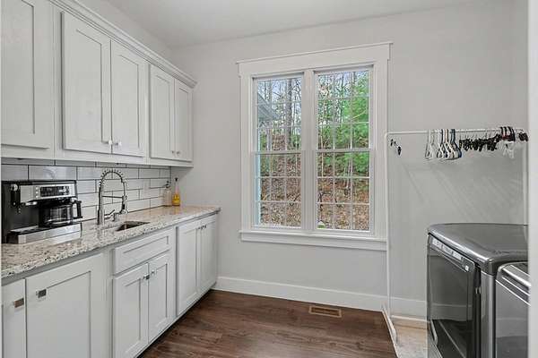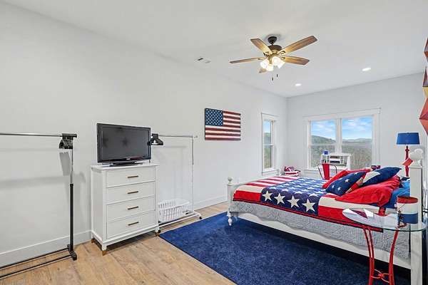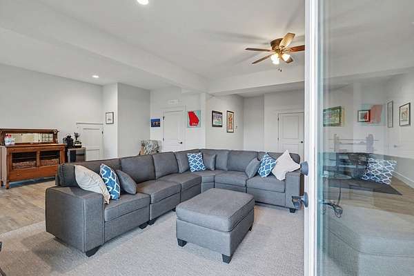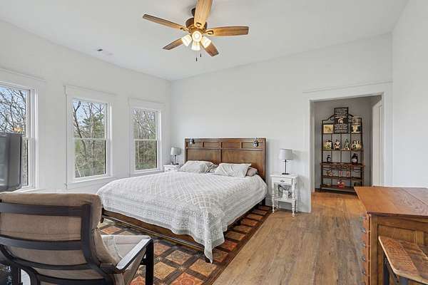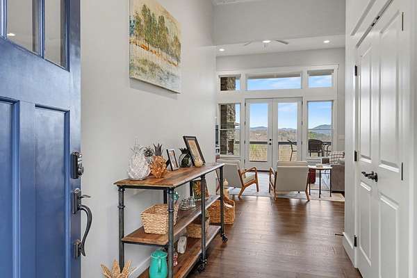 Craftsman-style beauty in the heart of the highly sought-after Owltown area of Blairsville! This one-owner 2022 home offers over 3,800 square feet of beautifully finished living space with 5 bedrooms, 4 full baths, and year-round layered mountain views in a private 1.5-acre wooded setting. Designed for easy one-level living, the main floor features 3 bedrooms, 2 full baths, a split-bedroom floor plan, a gorgeous open great room with cathedral ceilings, abundant windows, natural light, and a vented gas log stacked stone fireplace. The chef's kitchen is a dream with custom cabinetry, granite countertops, and a walk-in pantry, while the fabulous dining room is wrapped in windows to bring the outdoors in. The spacious main-level primary suite offers a stunning tile shower, freestanding soaking tub, double vanities, and a large walk-in closet with custom shelving. A mudroom, laminate flooring, tile, high-end finishes, oversized two-car garage, and huge concrete parking area add everyday convenience. The full finished terrace level features additional bedrooms and baths, a second family room, and a wet bar—perfect for entertaining or accommodating guests—along with ample storage and a covered porch to take in the cool mountain breeze. The main covered deck with a second stacked stone vented gas log fireplace is ideal for enjoying all four seasons. Located in an upscale community with paved roads, underground power, public water, high-speed internet, and a minimal $150 annual HOA fee, this show-stopper is just minutes from Vogel State Park, vineyards, hiking, and the United States National Forest.