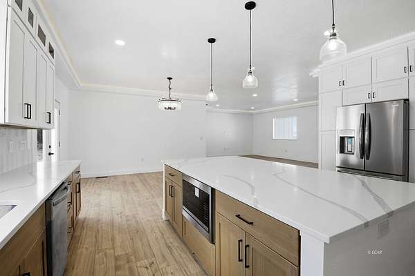 Est $3,329/moPerched on a scenic hillside near the Spring Creek Golf Course, this elegant ranch-style residence offers 2,345 square feet of thoughtfully curated living space with serene views overlooking Spring Creek. The expansive kitchen serves as the heart of the home, ideal for both entertaining and everyday living, while generously sized bedrooms provide comfort and privacy throughout. An oversized 42' x 26' three-car garage delivers exceptional space for vehicles, storage, or a workshop. Outdoors, the covered backyard patio backs to the hillside for the ultimate privacy below the juniper trees.