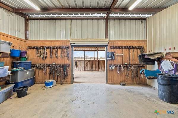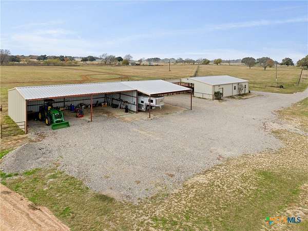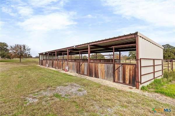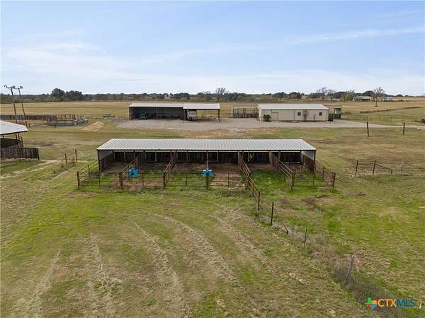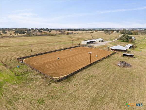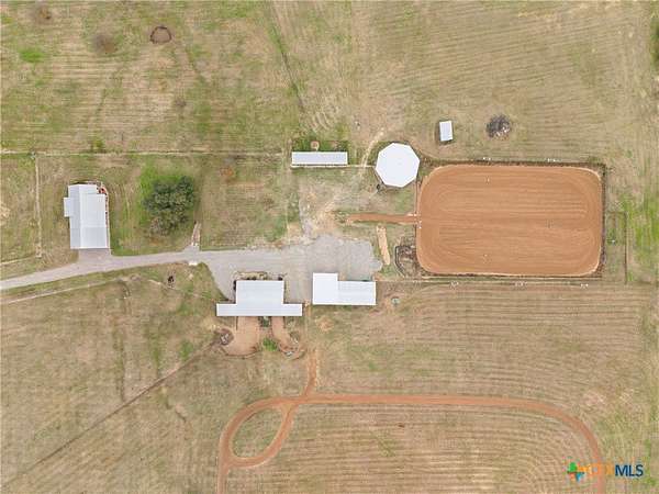 Rare find conveniently located in central Texas! Equestrian property on 28 acres, fully fenced and cross-fenced with automatic waterers in each pasture. 3BR/2BA home with open-concept layout, mature oak and pecan trees, and raised garden area. Extensive horse facilities include a 6-stall barn with runs, tack room, feed room, workshop, and sprinkler system, plus 8-stall shed-row barn with runs. Covered round pen with sprinkler system and lighted roping/barrel arena with return alley and holding pens, all with automatic waterers. Large equipment barn with trailer cover and wash rack. Crushed asphalt driveway with ample parking. Income-producing potential for boarding, events, or hay production. You do not want to miss out on this property!