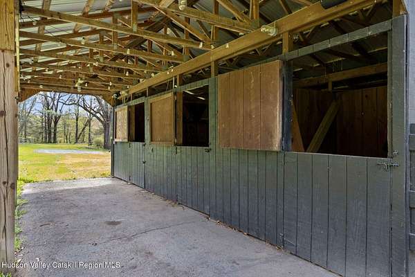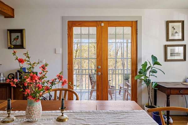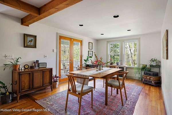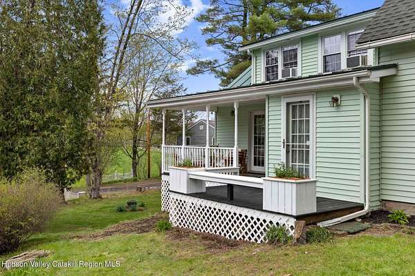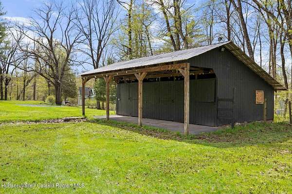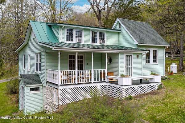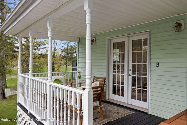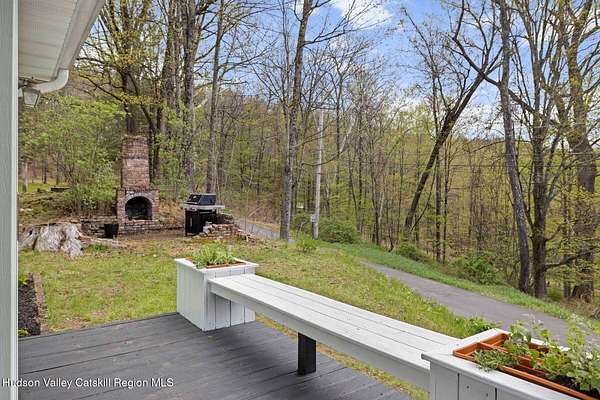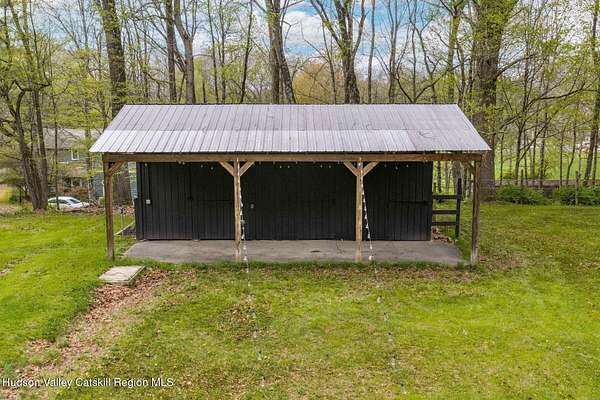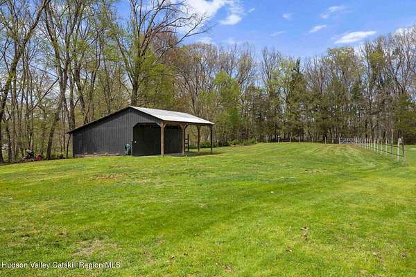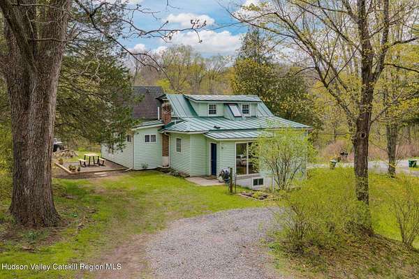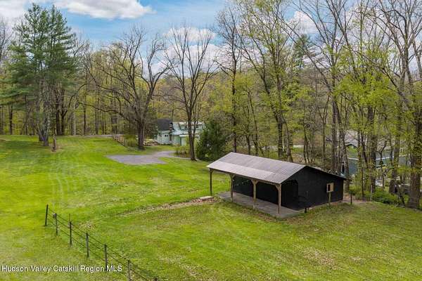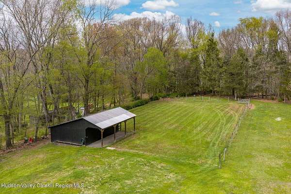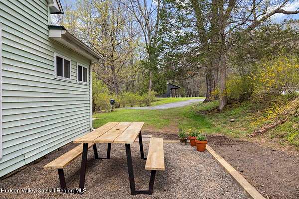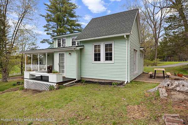 Tucked along a quiet, scenic country road, 452 Mountain Road offers a peaceful setting in the hamlet of High Falls, within the vibrant town of Rosendale. This inviting Cape-style home blends warmth and character with practical living. Inside, you will find three bedrooms, including one on the first floor large enough for a king-sized bed, plus two additional bedrooms upstairs, a spacious full bath, hardwood floors, and exposed beam ceilings that add a sense of history and charm. The custom country kitchen features granite countertops and hickory cabinetry, designed for everyday use and gathering. A back porch connects to the large living and dining room, creating an easy transition for indoor-outdoor living. A separate den with high ceilings opens to a patio with an outdoor brick fireplace, offering a comfortable space to relax or entertain. The property spans 1.5 flat, cleared acres, well suited for a small-scale farm or homestead. There is a paddock with electric fencing and a three-stall horse barn with water and electric already in place. Located just minutes from area favorites like Lifebridge Sanctuary, The Brooklyn Cider House at Twin Star Orchards, Inness, Ollie's Pizza, Mohonk Preserve, and Arrowood Farms, and a short drive to Kingston, Rosendale, and Stone Ridge, all less than two hours from New York City.