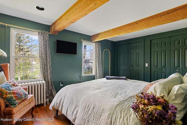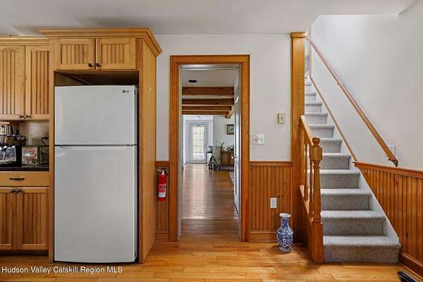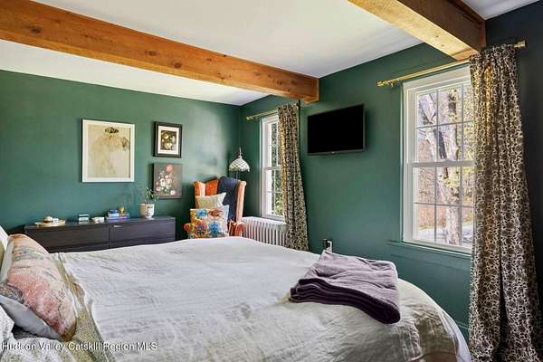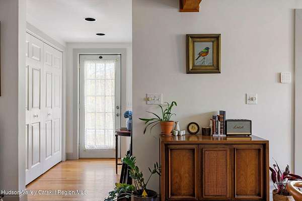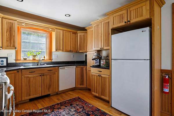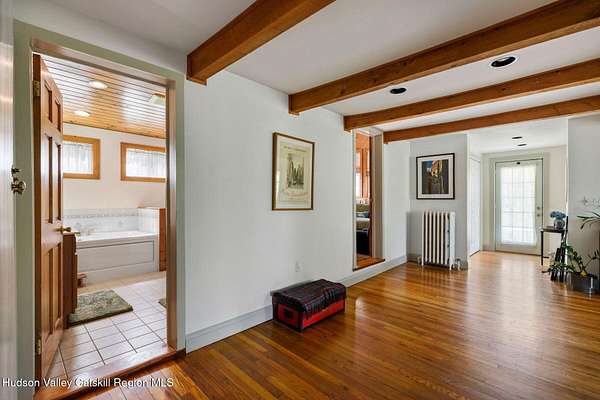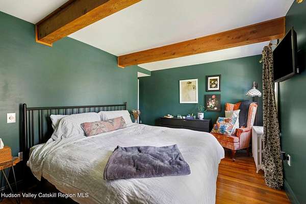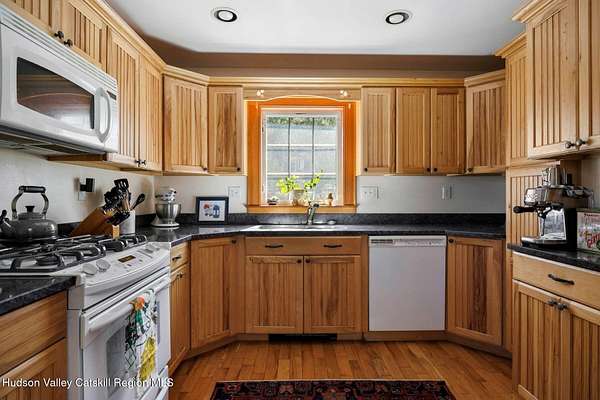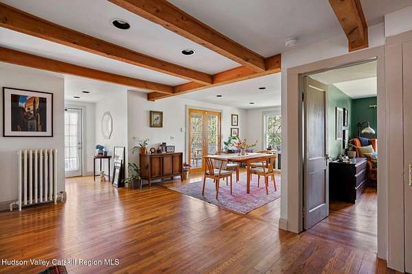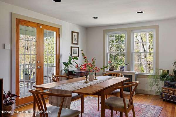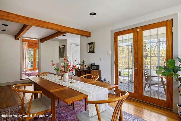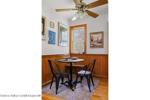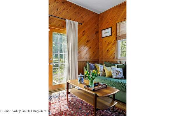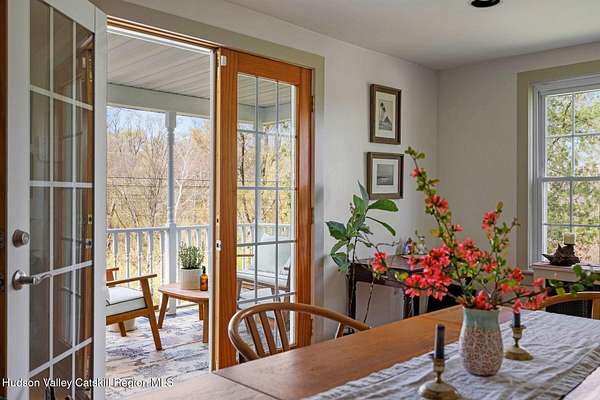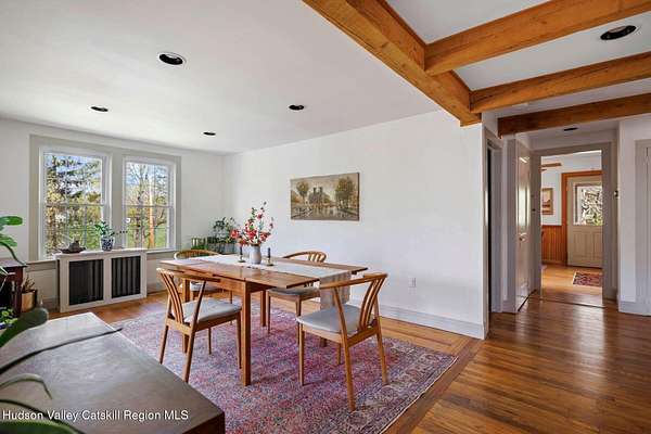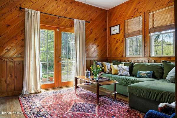 Tucked along a quiet, scenic country road, 452 Mountain Road offers a peaceful setting in the hamlet of High Falls, within the vibrant town of Rosendale. This inviting Cape-style home blends warmth and character with practical living. Inside, you will find three bedrooms, including one on the first floor large enough for a king-sized bed, plus two additional bedrooms upstairs, a spacious full bath, hardwood floors, and exposed beam ceilings that add a sense of history and charm. The custom country kitchen features granite countertops and hickory cabinetry, designed for everyday use and gathering. A back porch connects to the large living and dining room, creating an easy transition for indoor-outdoor living. A separate den with high ceilings opens to a patio with an outdoor brick fireplace, offering a comfortable space to relax or entertain. The property spans 1.5 flat, cleared acres, well suited for a small-scale farm or homestead. There is a paddock with electric fencing and a three-stall horse barn with water and electric already in place. Located just minutes from area favorites like Lifebridge Sanctuary, The Brooklyn Cider House at Twin Star Orchards, Inness, Ollie's Pizza, Mohonk Preserve, and Arrowood Farms, and a short drive to Kingston, Rosendale, and Stone Ridge, all less than two hours from New York City.