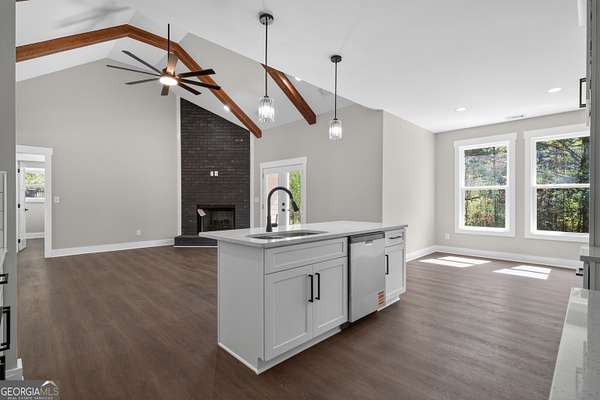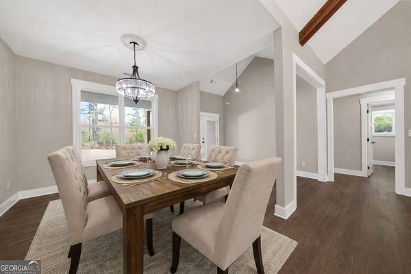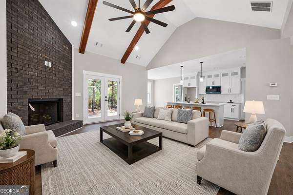 NEW CRAFTSMAN HOME - PRIVATE COUNTRY LIVING WITH MODERN FINISHES. Welcome to this beautifully crafted new construction Craftsman-style home offering the perfect blend of comfort, style, and convenience. Featuring 4 spacious bedrooms and 2.5 bathrooms, this home showcases a desirable split bedroom floor plan designed for privacy and functionality. Step inside through the inviting foyer entry into a stunning living room highlighted by beamed ceilings and cozy gas log fireplace, creating the perfect gathering space. The home boasts custom cabinetry paired with elegant quartz countertops, delivering both luxury and durability throughout the kitchen and baths. Enjoy entertaining in the separate dining room, ideal for hosting family dinners or special occasions. The thoughtfully designed layout flows seamlessly into a 2-car garage for added convenience. Situated on a private, level 2.164-acre lot, this property offers peaceful country living while still being just minutes from shopping, restaurants, and a nearby golf course-giving you the best of both worlds.