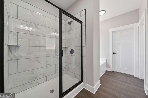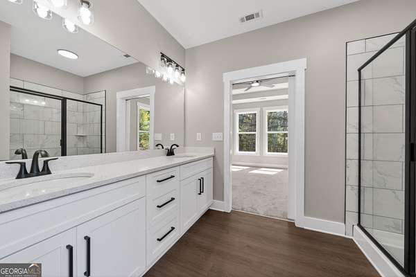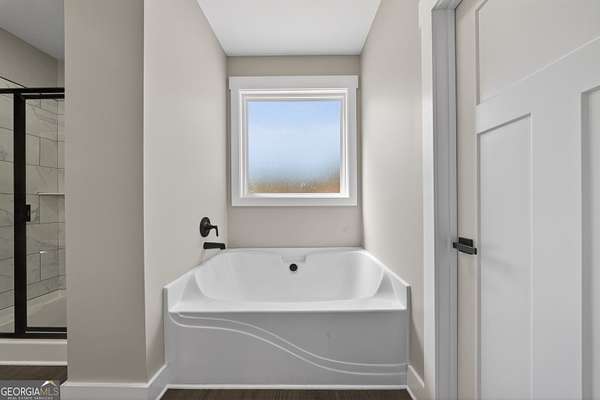 - Beamed Ceilings, Double Vanity, Master On Main Level, Separate Shower, Split Bedroom Plan, Vaulted Ceiling(s), Walk-In Closet(s)