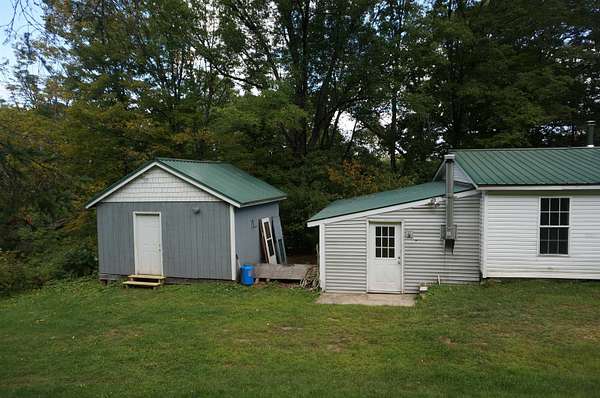 This nicely renovated home situated in the hills of Sheffield has been updated and refreshed and is move in ready. A covered entry- mud room is convenient to vehicle unloading and a large covered and heated porch offers year round use. The large open living-dining room affords spacious and welcoming spaces for entertaining and family gatherings. The kitchen has been completely redone and new appliances are installed. The primary bedroom has a full bath with large tub and shower. There is another bath which services the other two bedrooms. The floors are tiled and radiant heated via oil or pellet furnaces so heating is uniform and reliable. There is a seperate building with full bath that houses the pellet furnace. It could be set up as extra guest quarters. Another shed contains the automatic feed for the pellet furnace. There is a propane whole house generator and, just below the home is a poured concrete pad ready to be a base for a garage. The land is sloping and wooded but there two nice meadows toward the back, one with a pond. This property is perfect for someone who enjoys hunting as there is an elevated deer stand overlooking one of the meadows. In addition the VAST snowmobile trail is immediately in front for easy access. And Sheffield allows ATVs on the town roads. This is a perfect home for either primary or seasonal use so come take a look.