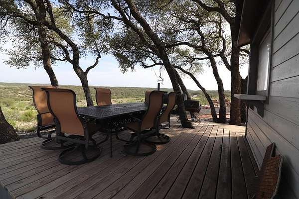 Rocky Ridge Ranch listing #517 is turnkey and ready to enjoy! The super views from the high hilltop lodge area to the highly improved ranch road system, quality hoof stock, lodging with all the comforts of home, and great water system make this ranch perfect for a large family or corporate retreat. Located in south central Edwards County, Texas. Ranch adjoins Kickapoo State Park. Perimeter game fencing. Main lodge has been newly remodeled and offers +/-860sqft of comfortable living space. This 2/1 home features a cozy sleeping loft and an open concept living and kitchen area, perfectly positioned to take full advantage of the expansive picture windows showcasing breathtaking hilltop views. Private water, electricity and septic. Ranch pool and Pool house with covered deck, full bath and washer dryer.Outdoor kitchen with gas stove, commercial cooler, bar top and large deck. 2 guest houses. Additional buildings. Live oaks. Blinds and feeders. Quality game includes +/-18 whitetail, +/-40 axis w 20 bucks with 6-8 being trophies, +/-11 Stumberg sheep w 2 being trophy rams, +/-11 aoudad. Wildlife exempt taxes.