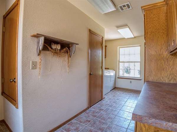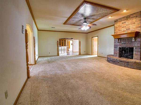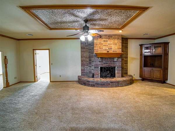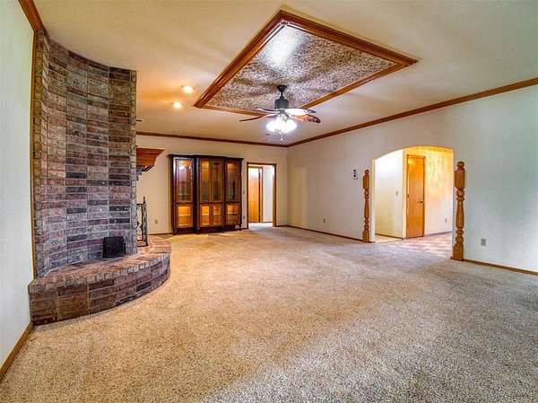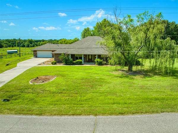 DESIREABLE SCHOOL DISTRICT, nice custom built brick home on 27 +/- acres, barn, pond and lots of great pasture just waiting for the livestock to call it home. This home has 3158 sq ft with 3 living areas, 2 dining areas, breakfast area off spacious kitchen with lots of countertop for meal prep & cabinets galore, complete with breakfast bar & stainless steel appliances. Main living room has gas log fp, 2 beautiful built in China cabinet & entertainment center. Formal dining and living has glass chandeliers, custom made drapes & spacious room sizes. Three bedrooms offer large footage and nice closets, primary ensuite has 2 separate lavs, large walk in closet, jetted tub & storage everywhere. Hall bath is complete with dbl lavs, 4 sets of cabinet storage plus hall linen closet. The large utility room has wash sink, washer/dryer, folding area and again more storage, plenty of room for crafting. Back sunroom can be enjoyed for watching the animals & birds with natural light from lots of windows. All windows sills are finished with marble for ease of maintenance. Oversized attached garage has safe room in back corner, for never having to get outside in the stormy weather. Covered patio in back looks over the back 24+ acres with pond & barn, huge shade trees to enjoy the outdoors. Large front porch all across the home with large shade tree in front with pretty crepe myrtles in flower bed. CVEC, ONG, Rural Water & Septic. 3 parcels all sold together. makes up the total of 28+/- acreage.