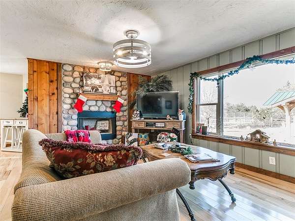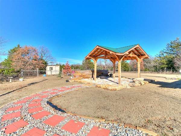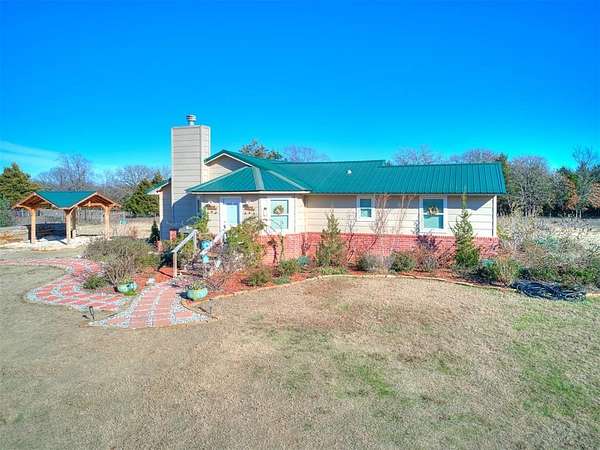 Welcome to your slice of peaceful country living on 4.36 acres, complete with the space, updates, and flexibility you've been hoping for. This beautifully refreshed 4-bed, 3-bath home was thoughtfully remodeled in 2020 to include two true primary suites, making it ideal for multigenerational living, hosting long-term guests, or simply enjoying a little extra comfort and privacy. With three full bathrooms and a layout that just makes sense, this home blends modern convenience with the charm of quiet acreage living. Nearly every major system has been upgraded so you can move in with confidence. A durable new metal roof, new windows, and new HVAC bring efficiency and peace of mind for years to come. Outside, the property is set up for easy living with a new insulated well house, a storage shed, and full perimeter fencing already in place. Whether you dream of gardening, hobby farming, or letting animals roam, this land is ready for you. A stone-paved gazebo sits just off the home, offering a perfect place to enjoy morning coffee while watching your animals or visiting wildlife. A chicken coop adds even more functionality for those wanting a small homestead setup. Professional landscaping designs were added to help you envision how to make the outdoor spaces your own. With no HOA, you'll have the freedom to use your land the way you want, and the home is conveniently located within Maud Schools. This is the kind of property that's hard to find-updated, move-in ready, and sitting on just the right amount of land to stretch out and enjoy the Oklahoma lifestyle. If you've been looking for a well-loved home with room to grow, space to breathe, and upgrades that truly matter, this one is worth a look. Homes like this don't come around often!