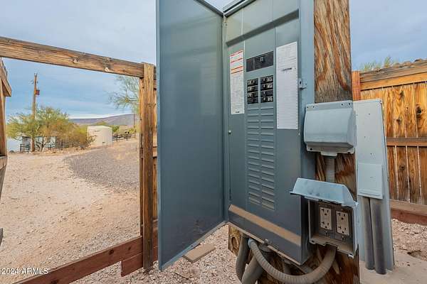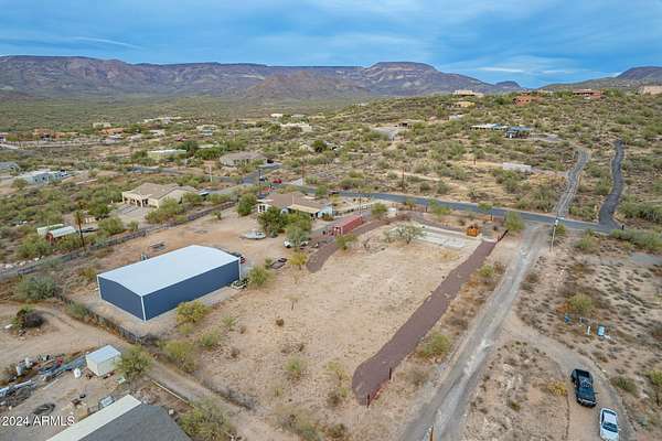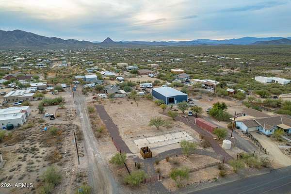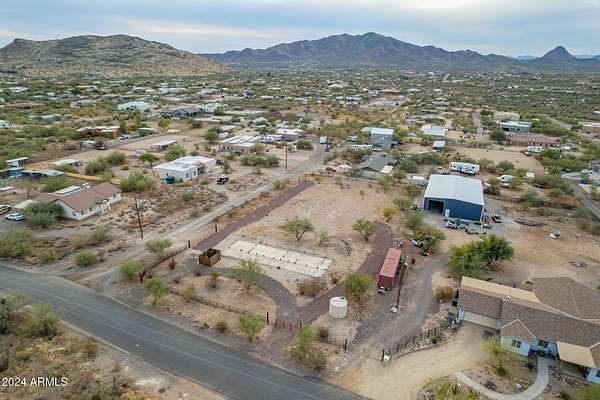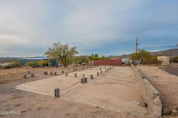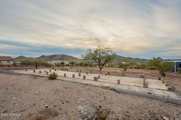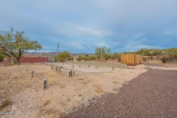 RARE FIND! OVER-SIZED 1.14 ACRE LOT WITH ACTIVE 200 AMP POWER ON PROPERTY! One-of-a-kind parcel with 360 degrees Mountain Views. Property is BUILD READY - Features Include: 26' x 68' CONCRETE SLAB, 1250 Gallon SEPTIC TANK, 3000 Gallon WATER HOLDING TANK, ACTIVE 200 AMP power service with 50 amp, 30 amp, and x4 20 amp RV HOOK UPS. Land includes FOUR RV GATES (12-32 ft) for easy access and property is FULLY FENCED! Boundary & Topographic Survey INCLUDED. NO HOA - Plenty of room for your RV, Boat, Trucks, or Animals! Located just miles from LAKE PLEASANT, HIKING TRAILS, ATV/JEEP TRAILS, AND MORE! This recently improved land is READY FOR YOUR DREAM HOME!