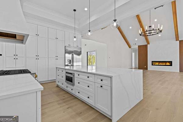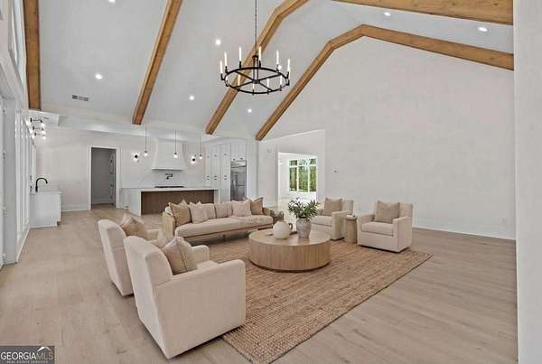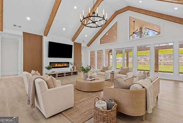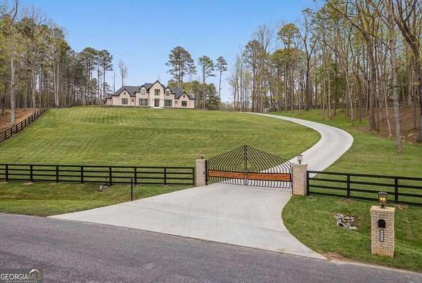 Situated atop a scenic hill, this stunning 5,700-square-foot luxury residence at 4521 Jack Pittman Rd, Dacula, GA 30019 offers privacy, elegance, and exceptional craftsmanship on 2.76 beautifully landscaped acres. The home features four spacious bedrooms, four full bathrooms, and one half bathroom, thoughtfully designed for both comfort and functionality. The grand living room features soaring cathedral ceilings and a striking Venetian-style fireplace, creating an impressive yet inviting atmosphere. High-end finishes are found throughout, including quartz countertops, luxury monogram appliances, a large laundry room, and a well-appointed mudroom for everyday convenience. The primary bathroom features a stepless walk-in shower that blends modern design with accessibility. Ideal for entertaining, the property features a fully equipped outdoor kitchen, perfect for gatherings and enjoying the serene surroundings. Combining refined interior details with expansive outdoor living, this exceptional home delivers upscale living in a peaceful, prestigious setting. All offers are welcome.