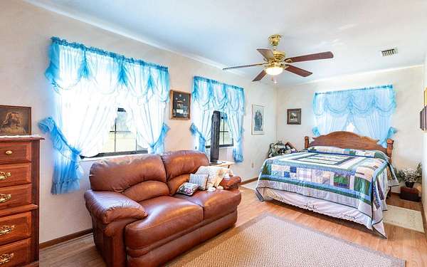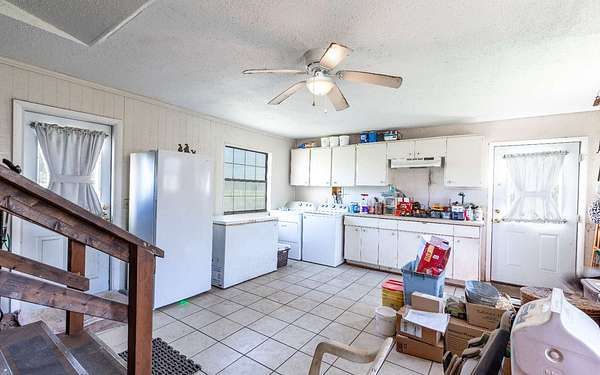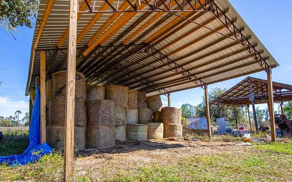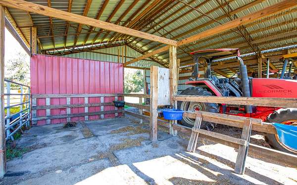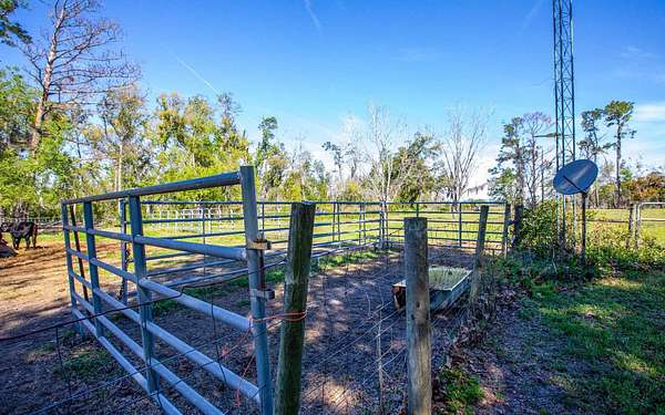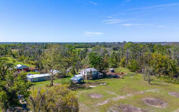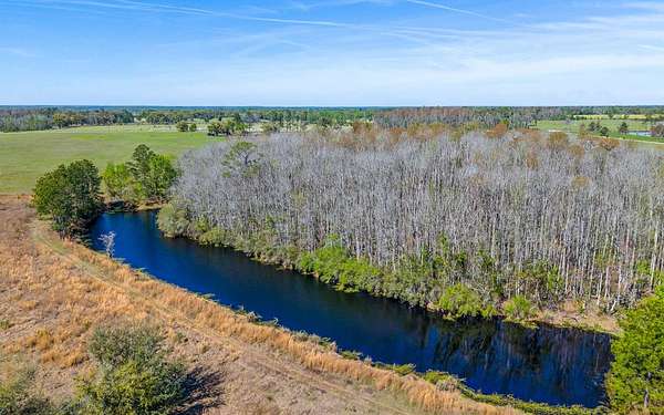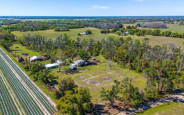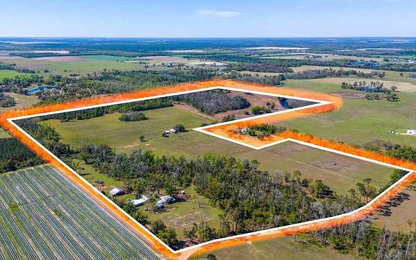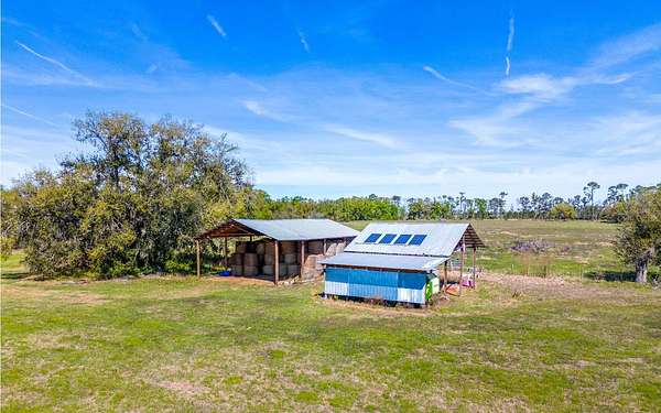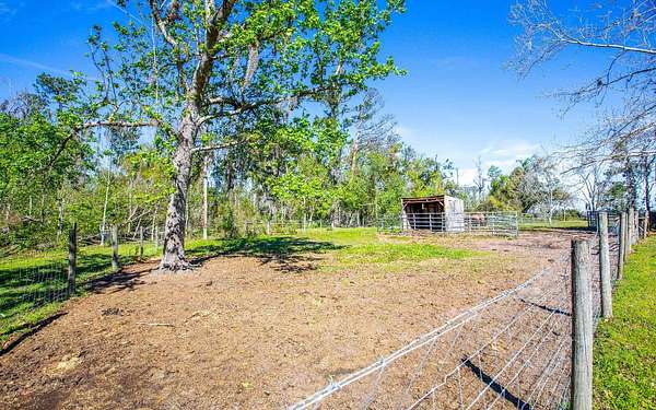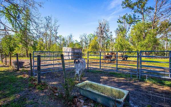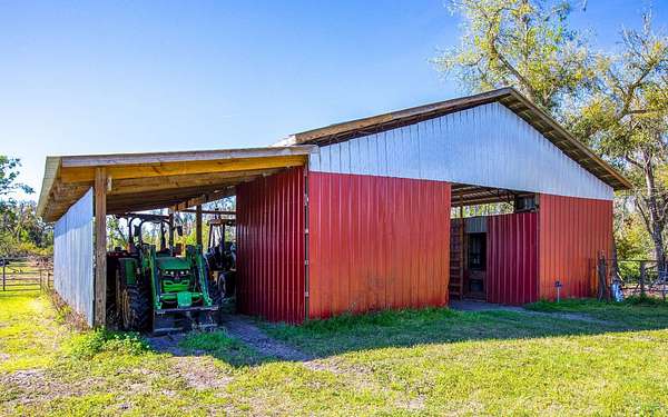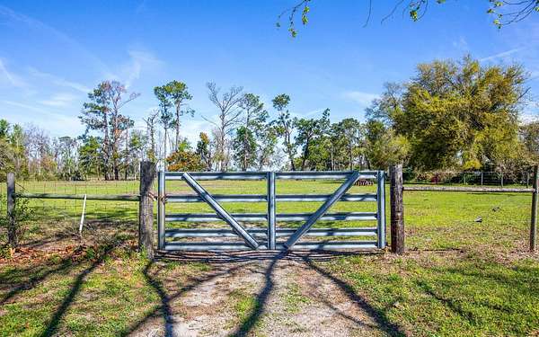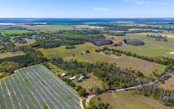 Welcome to the farm life! This 113.73-acre North Florida property is set up for true country living, where deer roam, cows graze, the creek trickles, and evenings are best spent overlooking your own land. The front portion offers approximately 33.73 acres of fenced pasture, surrounding the home, workshop, and barn, giving you a functional setup for animals and daily living. Cross fencing and a cattle working pen (sweep) adds to the functionality of this property. Beyond that, the land opens up to a 25-acre hayfield, along with an additional 15 acres of unimproved land just south of it, offering room to expand or shape to your needs. The property includes one primary hay barn, with an additional covered structure currently used for equipment that could also be utilized for hay storage. The west 40 acres is fully fenced and features a large pond, with some areas of fencing impacted by trees. The 2-story home offers 1,796 sq ft with 4 bedrooms and 2 bathrooms, including a downstairs master suite with walk-in closet and private screened deck access. Both bathrooms have been recently remodeled, and the home also features a dedicated office space, large utility room, and a screened-in back porch, and dual HVAC system for add comfort and efficiency. Additional improvements include a multi-bay workshop, barn with tack room and stall area, chicken coop, and established fruit trees including fig, lemon, satsuma, tangerine, olive, and pomegranate.
