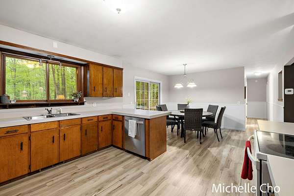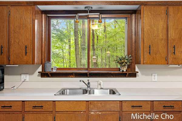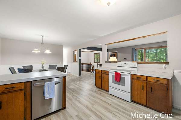 Nestled on a wooded 2-acre estate, this 4-bedroom, 2-bath ranch offers 2,350 sq ft of comfortable living with a flexible floorplan. The main level features a cozy wood-burning fireplace and an open kitchen/dining area that extends to a spacious deck-perfect for entertaining. The finished lower level adds two bedrooms, a living room, and storage. Recent updates include a new furnace, water heater, water softener with iron filter, re-plumbed basement, and new dishwasher, giving peace of mind for years to come. With a 2-car attached garage and full basement, this home combines country serenity with convenient access, just a half-mile west of M-40.