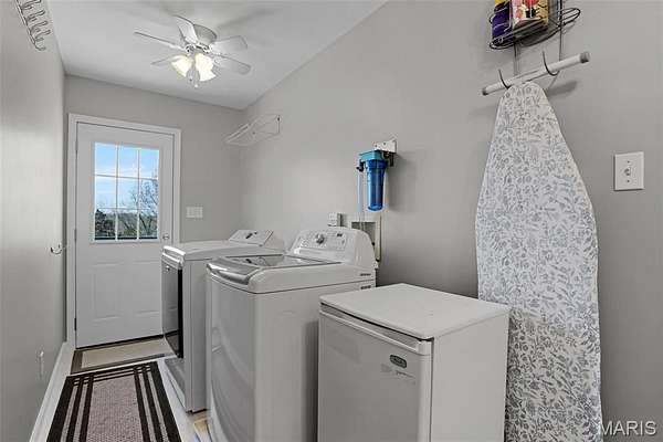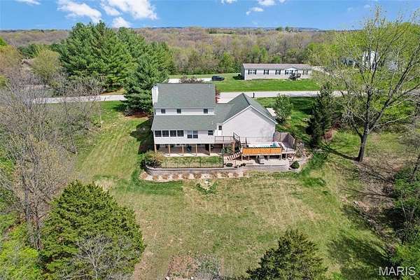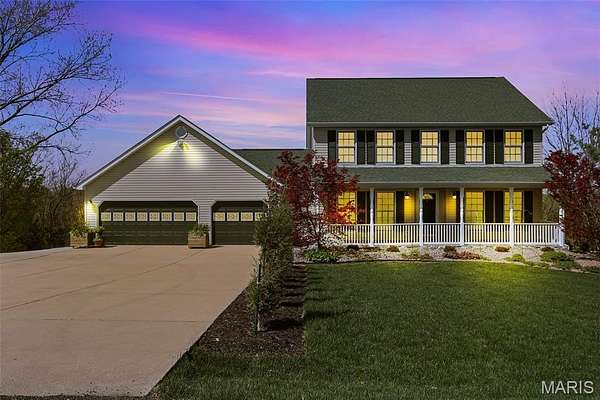 Nestled on 8+ acres, this immaculate two-story home offers the perfect blend of comfort, privacy, and natural beauty. A welcoming front porch that spans the entire length of the home, framed by vibrant flowering perennials, creates a warm first impression and an ideal spot to relax and take in the peaceful surroundings. Inside, the main level features a spacious living room with a cozy gas fireplace, perfect for gathering with family and friends, along with a separate dining room for more formal entertaining. The expanded eat-in kitchen is a chef’s delight, including custom cabinetry, recently installed new wall oven, gas cooktop, quartz countertops, and a generous pantry. Just off the kitchen, a screened-in sunroom offers the perfect place to enjoy fresh air and scenic views throughout the seasons. A large 19’ x 6’ main-floor laundry room with additional storage provides everyday convenience and leads directly to the expansive composite deck, where you can unwind in the 19’ swim spa while overlooking the tranquil property. Upstairs, you’ll find three comfortable bedrooms, including a beautiful primary suite featuring abundant closet space, double vanities, and a luxurious oversized walk-in shower. Two additional bedrooms share a well-appointed hall bath with tub and shower. The walk-out lower level adds even more living space with a fourth bedroom, recreation room, and cozy sitting area. French doors open to a covered patio, offering serene views of the private yard and the approximately five wooded acres that back to picturesque Dunn Spring Creek. Completing the property is a 29’ x 29’ oversized three-car garage, providing plenty of space for vehicles, storage, or hobbies. Thoughtfully designed and meticulously maintained, every detail of this exceptional home reflects quality, comfort, and the beauty of country living—just waiting for you to call it home.