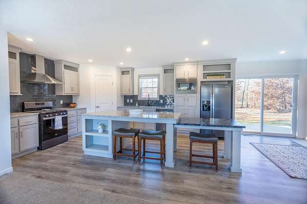 Welcome home to this BRAND NEW beautiful 3-bedroom, 2-full bathroom ranch, perfectly situated on just over 2 acres of wooded land. Enjoy a spacious and thoughtfully appointed interior featuring stylish decor, an open layout, and modern finishes throughout. The full basement includes an egress window for a possible additional bedroom and offers endless future possibilities -including additional living space, a home gym, or storage. Attached large two-stall garage provides plenty of room for vehicles and outdoor toys. This home is completely finished and move-in ready, just in time to celebrate the holidays in your brand-new home! Located on a paved and secluded road only 38 minutes north of Grand Rapids and just 12 miles south of Big Rapids. Conveniently near the Morley Stanwood Community School campus and newly paved Rail-to-Trail biking and walking path. With over two acres of land, there's plenty of space to add a pole barn or second garage. So much to love in this gorgeous home!