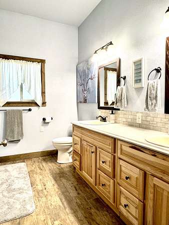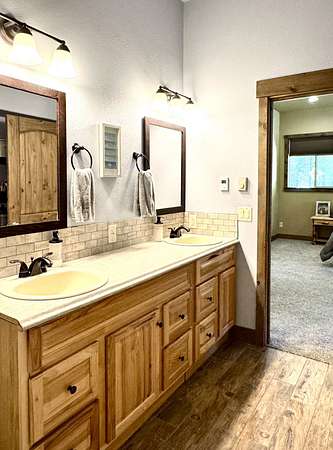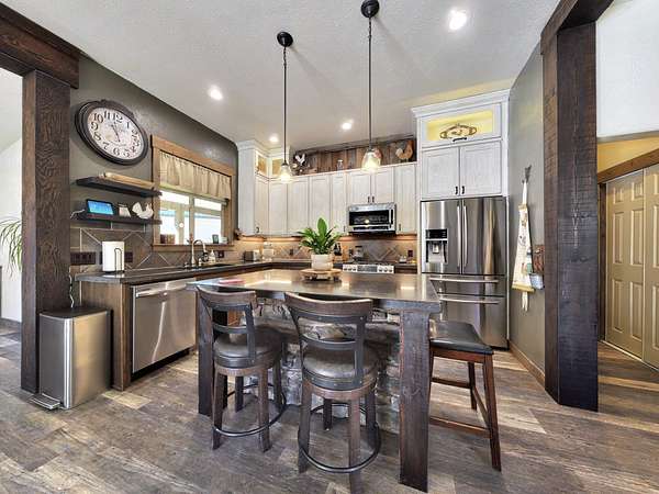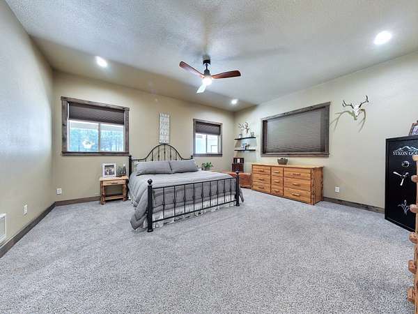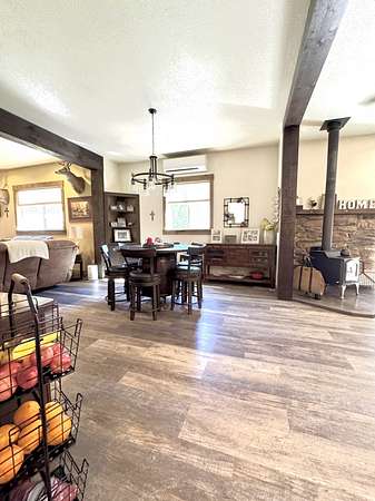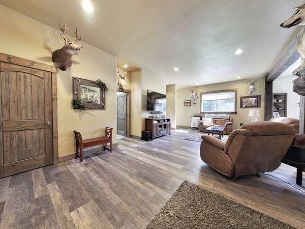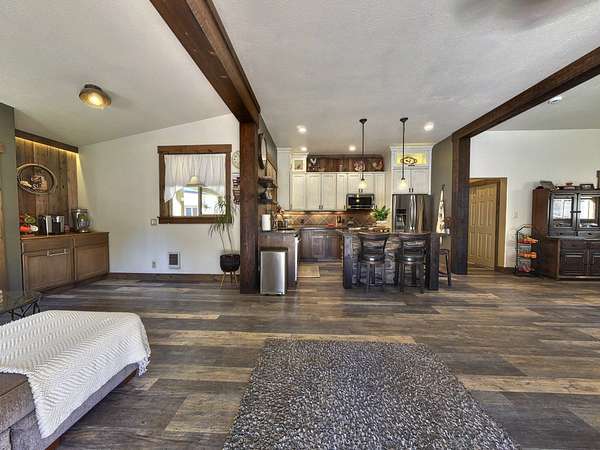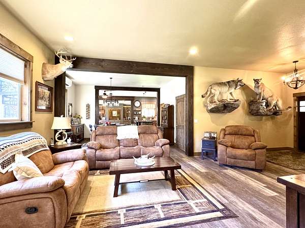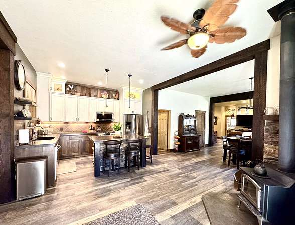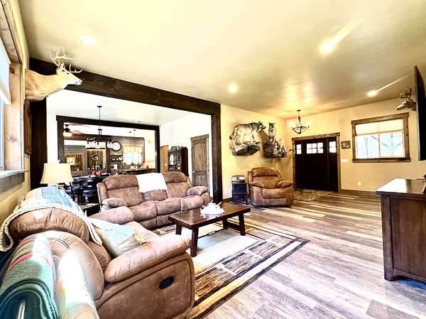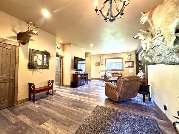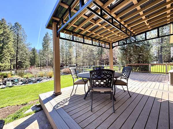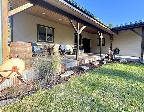 TRULY A GEM WITH THIS BEAUTIFUL MOUNTAIN ESTATE HOME/GUEST CABIN/SHOPS/WATER FEATURES ETC. - You will find an immaculate 3 bedroom, 2 bath home situated on 4.52 acres featuring an open floor plan with 10' ceilings, spacious living room/dining area, a farmhouse style kitchen, laundry/mud room with easy access to garage, additional bonus room off kitchen & a partial lower-level rec room w/sauna. The large primary suite offers a walk in closet and a full bath offering double sinks. This home has multiple covered patio/decks to relax and enjoy the sunrise and sunsets. A gated entry leads to a beautifully landscaped & lush lawn, w/ a fully fenced backyard featuring a raised bed garden, chicken coop, 13'X17' storage shed, and fire pit. There is a 32'X32' detached, 2-stall garage connected to the home by a covered breezeway. A private 896 sq ft studio cabin is tucked into the trees with a covered porch that overlooks a serene pond with water feature/spray fountain. Fronting the property is a large 36'X48' shop having one man door with 220V power and spacious lean-to's off both sides. This is also equipped with two office space rooms and a bathroom. This would be an excellent opportunity for anyone having a business they want to keep close to home! There is also a 24'X36' shop at the back of the property with two bays, plus five additional bays connected along the side for multiple vehicles, equipment or hobby use. Complete with a full rv hook up, underground sprinklers, 10KW propane backup generator that services the home, hot tub, and manual well pump in case power goes out for long periods of time. There isn't much these sellers haven't thought of here! Call your agent for a showing today!