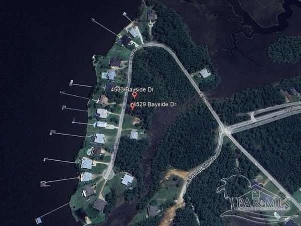 Discover the perfect setting for your dream home with these stunning, partially cleared adjacent lots, approximately 0.45 acre, located just across the street from Escambia Bay. This lot offers nearly 1/2 acre of prime land, ideal for building a house. Enjoy ample uplands for construction, and rest easy knowing that no one will build behind you. A wetlands study is available upon request. Situated in the picturesque Bayside subdivision, this unique opportunity allows you to create your haven in one of the Gulf Coast's most beautiful locations. This tranquil waterfront community offers breathtaking sunrises over Mulat Bayou and enchanting sunsets on Escambia Bay. Take leisurely strolls down Bayside Blvd and immerse yourself in the natural beauty, where you're likely to encounter resident Osprey, Cardinals, Bluebirds, and even the occasional deer or red fox. This exceptional water view lot is surrounded by nature, providing a serene escape with all the conveniences you need: sewer, electricity, public water, and high-speed internet. Whether you envision a single grand residence or two charming homes, this is your chance to bring your vision to life. Don't miss out on this rare and versatile opportunity! 4533 Bayside Dr, the 1/2 acre north lot next to this one, is also for sale. Both lots have been partially cleared leaving just the large trees for you to choose which ones to keep. Buy both lots to have nearly an acre in this pristine location!