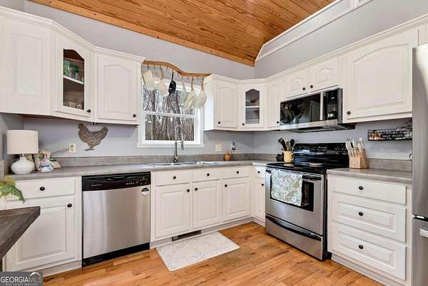 MOUNTAIN RETREAT-2 bedroom/2bath cabin on 2.96 acres with a creek. Escape to your own secluded North Georgia mountain haven. This cozy, well-maintained cabin offers 1,423 sqft of comfortable living space nestled on 2.9 private acres with a beautiful creek. Inside, you'll find "real" wood floors, a paneled wood ceiling, and a warm, inviting family room that perfectly captures the charm of mountain living. Start your mornings on the wraparound porch with a cup of coffee in hand while deer and wildlife gracefully wander through the yard. Evenings are ideal for unwinding outdoors, listening to the peaceful sounds of nature and pure mountain tranquility. This cabin offers the perfect balance of privacy, adventure, and convenience. Whether you're planning a romantic getaway, a girls' wine weekend, or a family adventure, you'll be in the heart of it all without sacrificing serene mountain seclusion. You are 3.5 miles from Yona Mountain Vineyards, 4.0 miles Cenita Vineyards, Cottage Houes restaurant and other fabulous eateries are 2.6 - 10 miles away. Helen, Georgia is only 20 minutes down the road. Enjoy Helen's Octoberfest, river tubing, festivals, live entertainment, hiking, horseback riding, and countless outdoor adventures just minutes away. This property makes a fantastic investment property or the perfect private retreat for personal renewal and serenity.