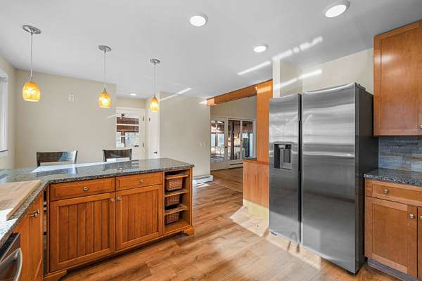Refinished basement! *In-Home Business Opportunity + Single-Level Living* This home offers the perfect blend of comfort, space, and convenience. Inside, walk into a surprisingly spacious interior, featuring cathedral ceilings, and a welcoming wood-toned atmosphere throughout. Designed for easy single-level living, the home offers 3 bedrooms and 2 finished bathrooms, with a third bathroom in the basement that is nearly complete. The layout flows effortlessly, with an open main living area ideal for gathering and entertaining. The kitchen features modern touches such as: stainless-steel appliances, granite countertops, and custom cabinetry, that make daily living a breeze. A three-season room extends your living space and serves as the perfect spot for relaxing or hosting friends during the warmer months. Outside, enjoy both a front and back patio - the front patio featuring a charming grapevine. The backyard offers a fire pit area and the natural privacy of surrounding trees, giving you a peaceful retreat. Located on Route 101, take advantage of quick access to Bedford’s shopping, dining, schools, commuter routes, and outdoor recreation. The property is also zoned for in-home business use, a valuable advantage for those with solo or small businesses. Additional features include a finished basement, a garage, and a shed for extra storage! Schedule your showing today!