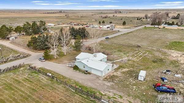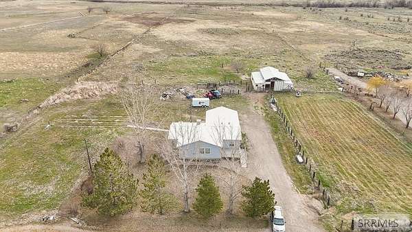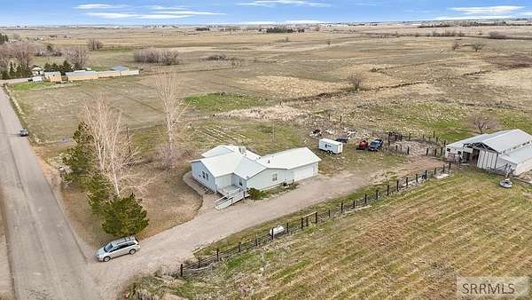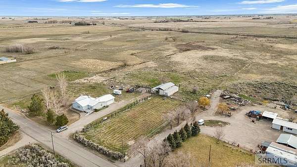 Clean home with land! Situated on 9.81 acres with valuable water rights, this well-maintained 27x52 Guerdon manufactured home with a stick-built addition offers comfortable country living with room to grow. Inside, you'll find beautiful wood flooring, nice oak cabinets, with an inviting interior. Handicap accessible.The oak kitchen provides plenty of cabinet space and a warm, welcoming feel. The primary bedroom features a walk-in closet, garden tub, and separate shower, creating a relaxing private retreat. The stick-built addition adds a spacious living room with a cozy propane fireplace along with a small bedroom or office, perfect for guests, work-from-home space, or hobbies. Additional features include central air, vinyl siding, a durable metal roof, and an attached double-car garage with an asphalt roof. The property includes 18 shares of irrigation water from the Aberdeen/Springfield Canal, with a head gate to the property. The acreage offers plenty of room for animals, projects, or future improvements. Outbuildings include corrals and a barn with four stalls (in need of some repair), plus partial fencing. There is also a second slab with utilities, providing potential for guest quarters. Enjoy the freedom of country living here! Text 'if homes' to 59559