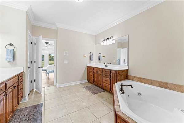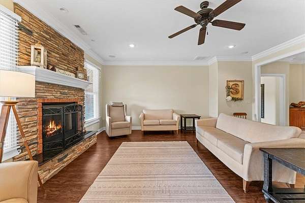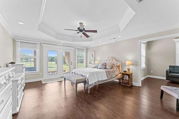 GATED COMMUNITY- Vineyard Subdivision. ALL the extras! Nestled in the sought-after, private gated community of the Vineyard subdivision, this stunning five-bedroom, four-and-a-half-bath estate offers beautifully designed living space on more than two acres of landscaped grounds. A tree-lined circle drive welcomes you to the property, which features multiple bonus rooms, a dedicated office, and a large primary suite with a private sitting area and extra-large his and her closets. A thoughtfully designed utility room with built-ins adds everyday convenience, while a guest room provides comfort for visitors. Outside, a covered patio overlooks the meticulously landscaped grounds, creating an ideal setting for entertaining or enjoying the serene surroundings. On-demand hot water heater and an invisible dog fence which surrounds the entire property stays with the property.
