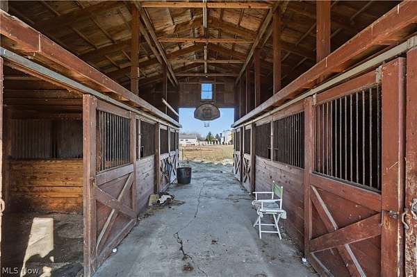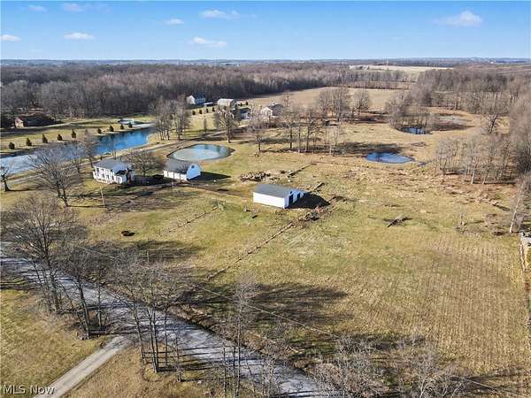 Nestled in the heart of South Range School District, Twin Willow Farm unfolds like a tale of endless possibilities. Across 15 acres of versatile land, a 12-stall center-aisle barn and sand based round pen and pastures stand ready for your livestock or equestrian dreams. Fish glimmer in serene ponds, while every building-now crowned with newer dimensional shingle roofs-whispers craftsmanship. And best of all there is free gas which means warm winters and energy savings year round. Inside this colonial style home you will find 3 bedrooms, 2.5 baths, a large first floor office, both living, family room, dining room and at the heart of the home a custom maple kitchen crafted from raw lumber with elegant crown and dentil molding-making a statement. Full-extension drawers, pull-out pantry shelves, and dual dimmable zones (with cozy under-cabinet lighting) create a warm, functional haven. This property doesn't just offer a lifestyle-it offers potential. You will appreciate the walk-out basement and having a 5 car garage with an upper level to open up so many options. You're just 10-15 minutes from retail and dining, close to Canfield Fairgrounds and Garwood Arena, and easy access to Beaver Creak State Park and Buckeye Horse Park. This property offers a private rural setting, yet not cut off from the world. Schedule your private tour today. We will love seeing the memories you will make!
