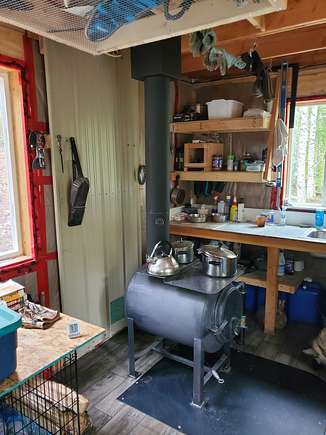 Amenities: XL Propane EZ Freeze fridge, propane range/oven, Alaskan-made wood stove, and cellular booster.