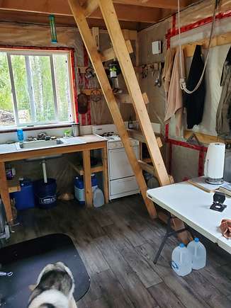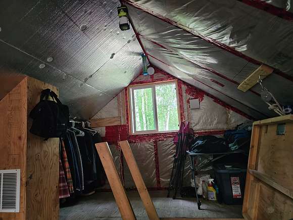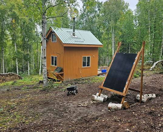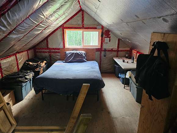 The 12' x 16' dry cabin (~384 sq. ft. including sleeping loft) is solidly built, well-insulated, and fully functional for year-round living. Ready for your final interior paneling or expansion. Everything sold as is.