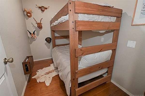 The thoughtful layout includes three full-size bedrooms, featuring two primary suites each with their own private bathrooms - because who doesn't appreciate a little personal space? You'll also find a versatile bunk room that can easily transform into an office or hobby space, depending on your needs.