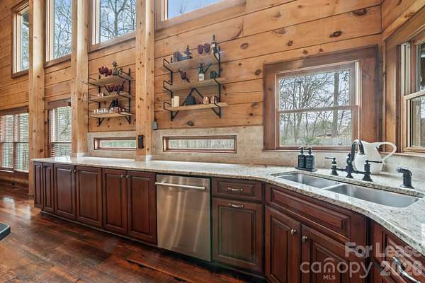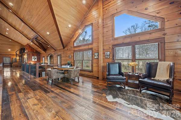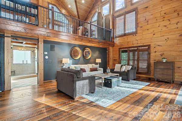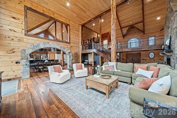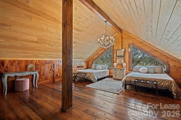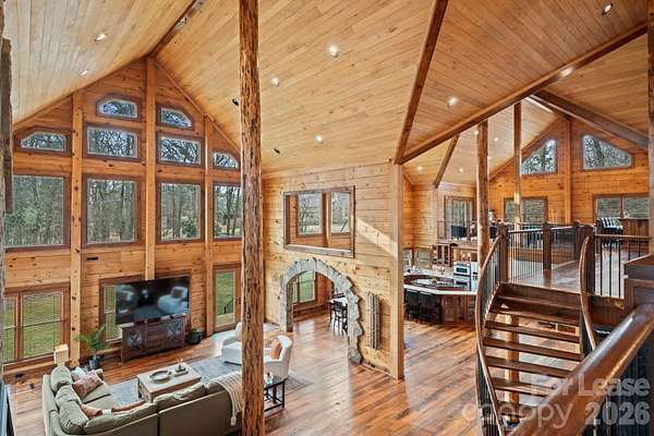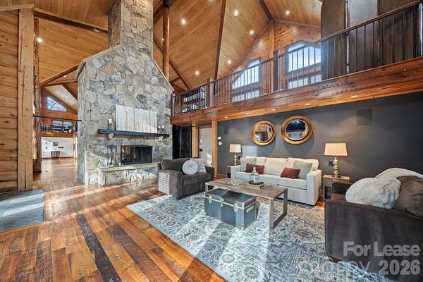 Stunning Fully Furnished Lodge-Style Retreat with Gated Privacy ready for rent! Experience the perfect blend of rustic elegance and modern comfort in this beautifully appointed home. Nestled on a private, gated lot with expansive acreage and serene views, this exceptional property offers both seclusion and convenience. Designed to comfortably accommodate large groups for short- or long-term stays, the home features three spacious bedrooms and three sofa beds, three full bathrooms, and two half baths. Multiple terraces provide additional outdoor living space, ideal for relaxing or entertaining. Upon entry, you're welcomed by a dramatic, floor-to-ceiling, double-sided stone fireplace - a stunning focal point that adds warmth and architectural charm. The Great Room boasts soaring ceilings and abundant windows that flood the space with natural light, creating an inviting central gathering area. The gourmet kitchen is thoughtfully equipped with granite countertops, a tumbled stone backsplash, and stainless steel appliances, including an oven and warming drawer - perfect for hosting and preparing meals with ease. The second level offers flexibility with a library loft game/entertainment area with wet bar features pool table, foosball and air hockey, plus two private bedroom suites - each featuring ensuite baths and cedar closets. And a third level Loft boasts two queen beds, offering ample room for relaxing, dressing or simply unwinding in comfort. With game areas, workspaces, a coffee bar, a computer niche, and even a speakeasy lounge/bonus room, there is truly room and something for everyone! Additional highlights include gorgeous Heart of Pine flooring, an open and flowing floor plan, and a rare combination of privacy and accessibility. Easy access to interstates, the Charlotte International airport and the U.S. National Whitewater Center, this remarkable retreat provides easy access to year-round outdoor adventure. Ideal for family retreats, reunions, executive rentals, or special gatherings, this one-of-a-kind property offers both grandeur and comfort in an unforgettable setting! Schedule a showing today!