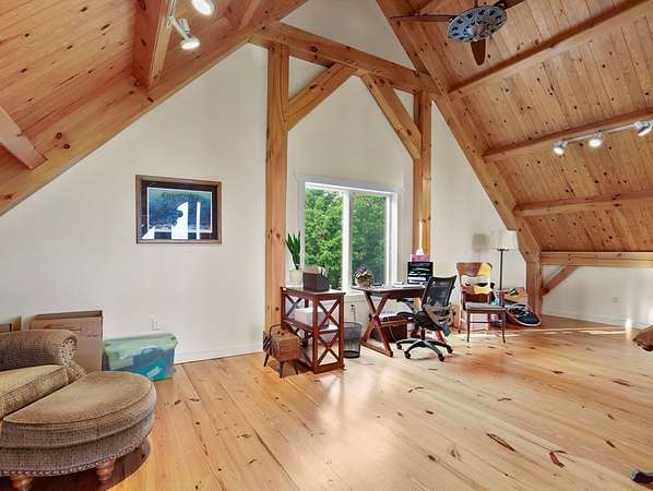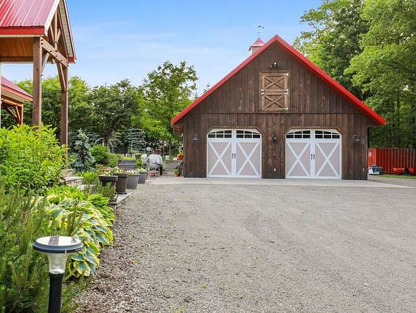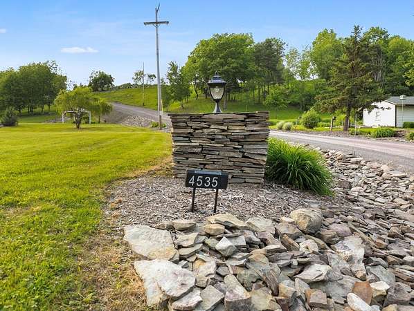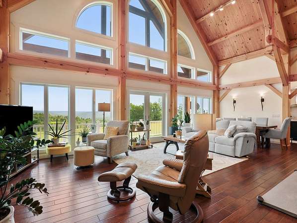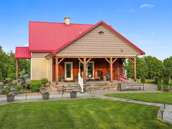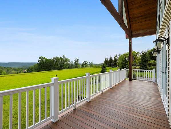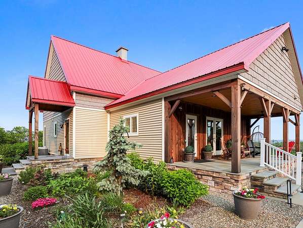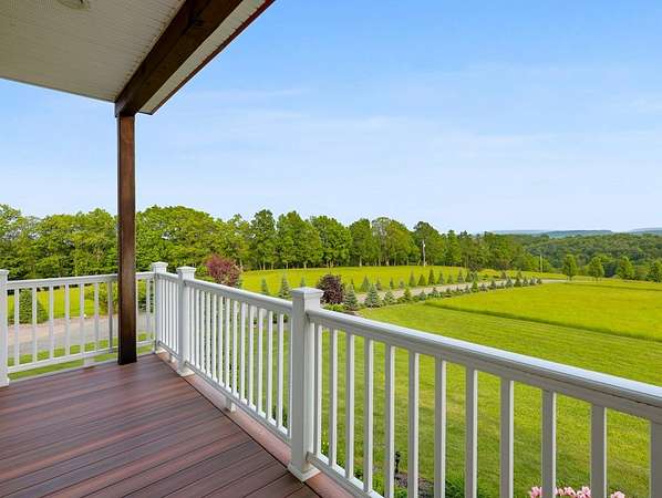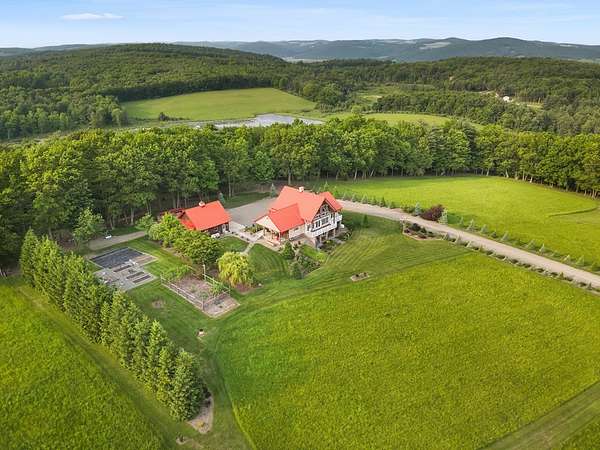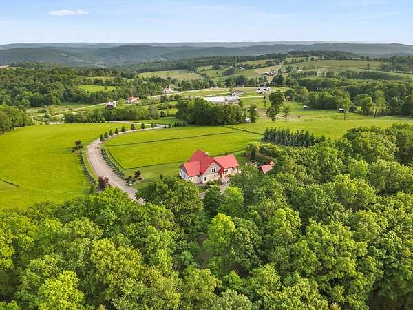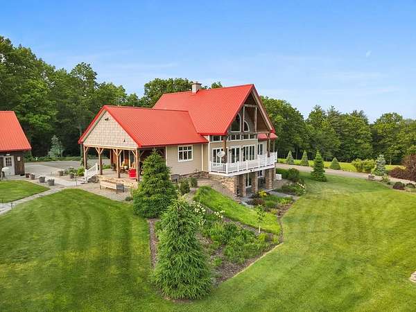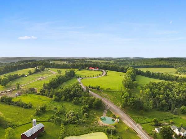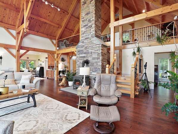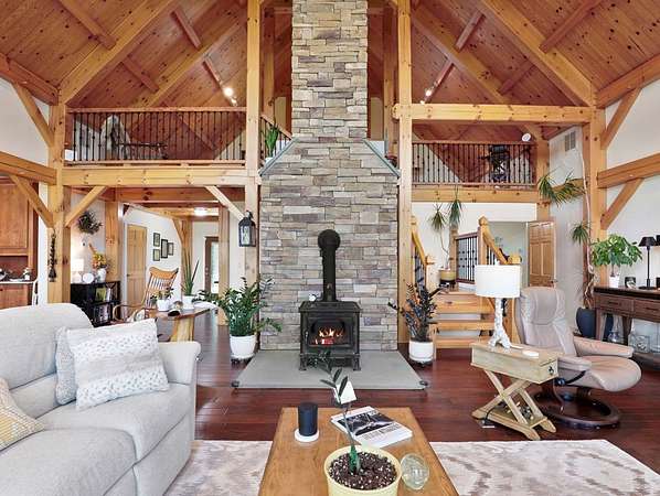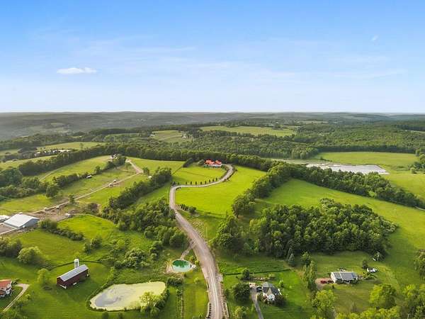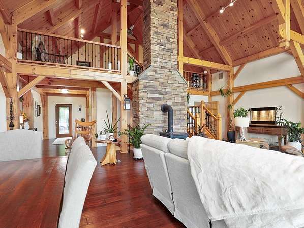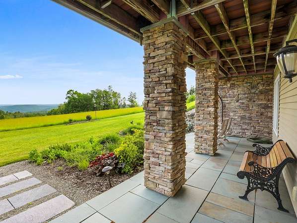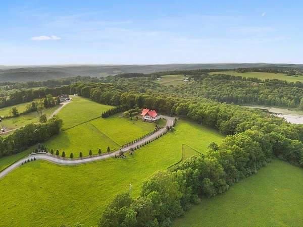 From the moment you drive up the stone-walled entranceway, you'll be captivated by sweeping views that surround this exquisite 28+/- acre estate in Bradford County, PA. This 4,300 sqft masterpiece by Settlement Post & Beam, built with high-quality Murus SIP panels, ensures a solid & energy-efficient structure. No detail was overlooked, including a home generator for peace of mind. Inside, you'll find 3 spacious bedrooms, 3 full baths, an upper & lower kitchen, impressive loft area, radiant floor heating & an open floor plan designed for entertaining. Host unforgettable gatherings on the patio, in the manicured gardens, or by the two scenic ponds. The largest pond, with a boat and dock, sits within a wooded oasis, while the front pond is ideal for fishing or relaxing. Meticulous care shows throughout, from the elegant design, the landscaping and two-car garage. If you're seeking a unique, luxurious retreat with breathtaking views, this estate is ready to welcome you home.