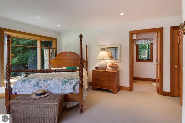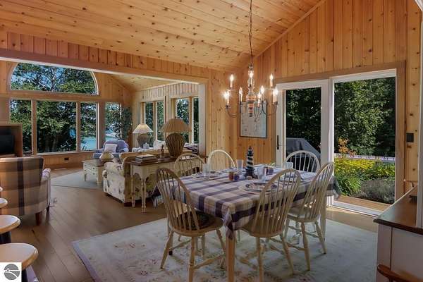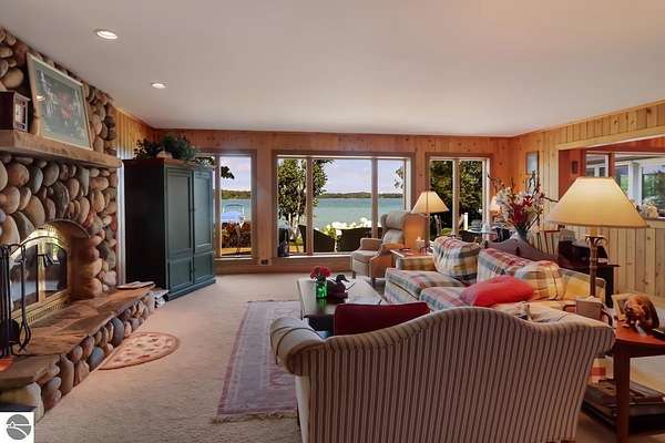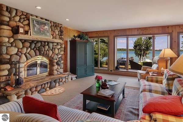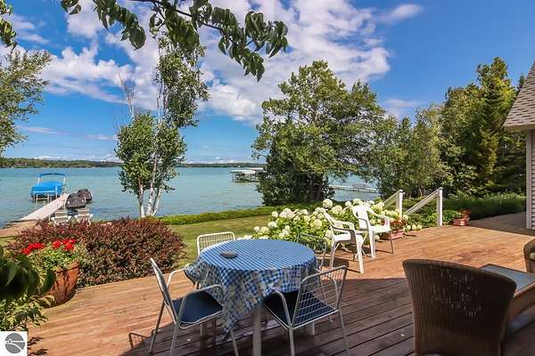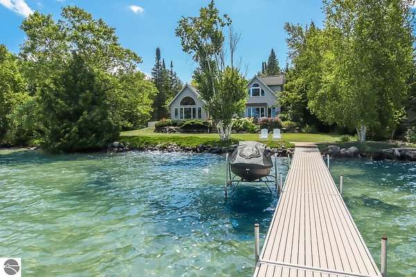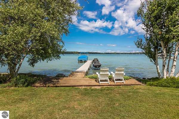 Est $19,507/moLocated on the south shore of North Lake Leelanau at the end of a private road just 2.1 miles from Leland. Perfect all sports lake lifestyle with 121 feet of hard sand lake bottom. Open floor plan with a classic natural field stone fireplace, two master ensuite bedrooms, large deck, manicure lawn, vibrant perennial garden, and much more. Dock, pontoon boat, two jet skis, and hoists are available. Some furnishings are available as well.