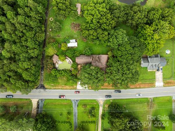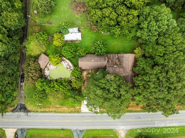 Rare Opportunity! 3.45 acres available in prime location. Value is in the land, Property/Structures sold as is. Currently zoned R-1, however, Per Town of Cramerton Planning Dept., the Future Land Use Plan map for this area does support rezoning to mixed use commercial. With 305' road frontage there is potential for multiple uses for this property. Water line has been run in front of property, Potential to tap on once in service. Value is in land, however, the house could be upfitted for office space or rentals. Home offers 3 bedrooms per septic records, there are at least 7 rooms, 4 bathrooms, 3 fireplaces, 4 car garage. HVAC does not work. Pool, house, multiple structures on property all sold as is.
