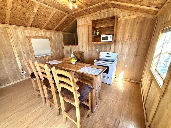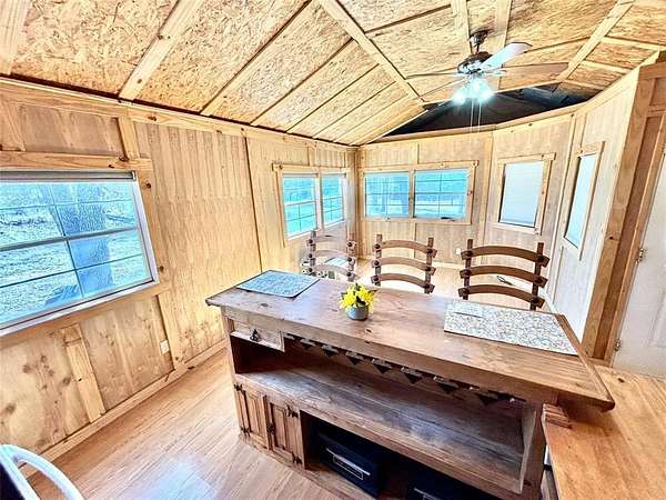 Inside, you’ll find an open floor plan with a durable metal roof overhead and serene views of the surrounding nature. Mature trees provide shade and a peaceful setting, creating a true retreat from the hustle and bustle.
