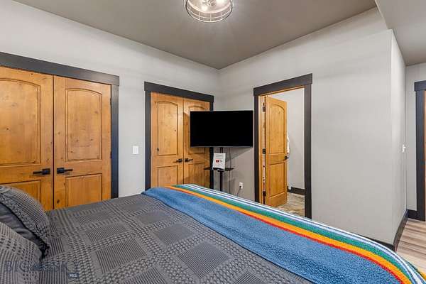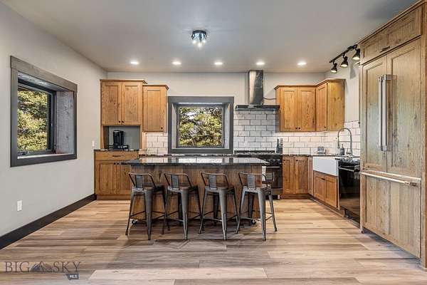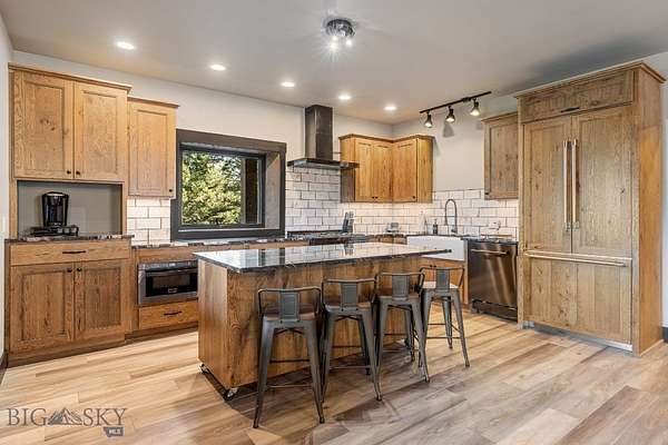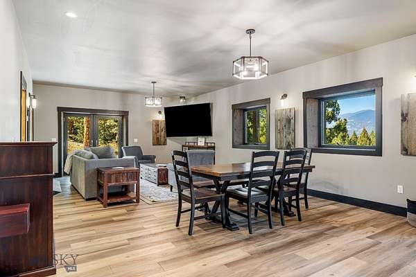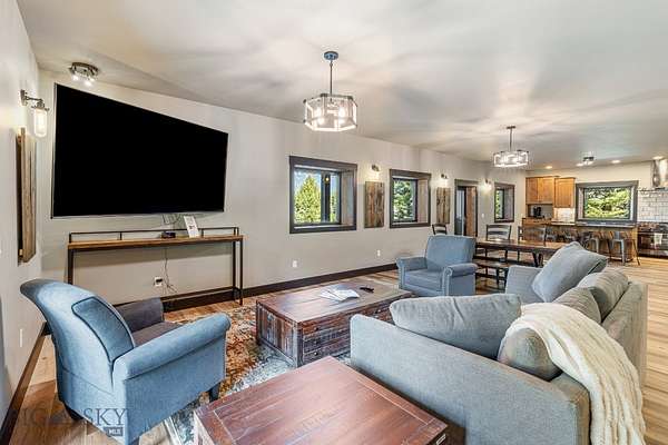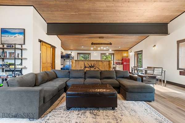 Set atop a hill on over 11 private, wooded acres, 454 Grouse Ridge is the ideal Big Sky retreat that combines privacy, views, and convenience - just minutes from the heart of Big Sky, and the Gallatin River. The open-concept main level features a beautiful fireplace, open seating and dining area as well as a custom kitchen with high end appliances. Best of all, the massive windows frame some of the most stunning mountain and river views the area has to offer. A large covered balcony extends the living space outdoors and creates a seamless connection to the setting that can be enjoyed year-round. The main level also features a large primary bedroom and ensuite bathroom as well as a second bedroom that currently serves as a bunk room with it's own door out to the wrap-around balcony. The lower level offers two additional ensuite bedrooms, a second full kitchen and second laundry room as well as a spacious living area. The space is ideal for family and friends who value privacy, or as a lock-off rental option. Positioned into the hillside, the lower level offers walk out access to a second hot tub and abundant natural light. Upstairs, a large bonus room with full bath, kitchenette, and private entrance adds even more flexibility for family, friends, or long-term guests. Think: game room, bunk room, home theatre - the possibilities are endless. The home is being offered fully furnished and turn-key, allowing you to settle in immediately or begin generating rental income right away. With incredible views, abundant wildlife, unmatched privacy, and a flexible floor plan on 11 acres, 454 Grouse Ridge is a truly unique retreat that captures the best of the Big Sky lifestyle.