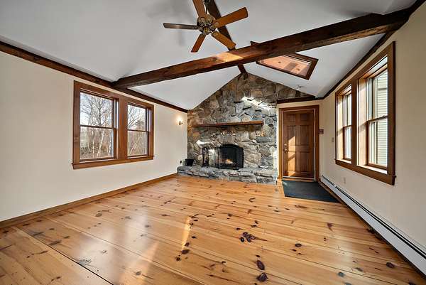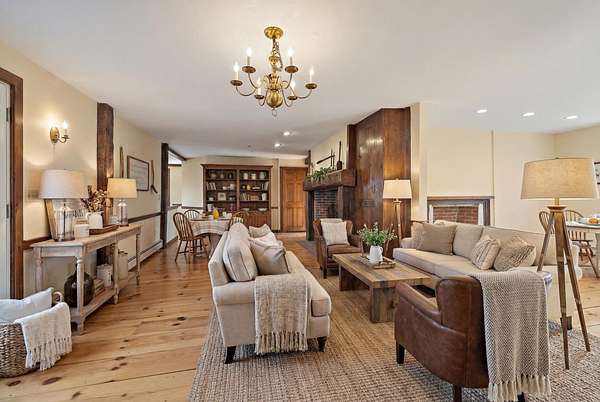 Own a remarkable piece of history and opportunity with the iconic Dr. William Hardy's Tavern, built circa 1765. Set on 6+ picturesque acres, this exceptional property features a pond, gazebo, and expansive grounds that offer privacy, charm, and possibilities. With over 3,300 square feet of living space, the home includes 4 bedrooms and 3.5 baths and showcases an abundance of original character throughout. Beautiful wide-plank wood floors, exposed beams, and five fireplaces highlight the home's rich heritage, while large windows fill the interior with natural light. The expansive first level provides incredible flexibility to suit your lifestyle, offering generous space for a living room, family room, dining area, flex space, and a well-appointed kitchen complete with granite countertops, stainless steel appliances, and ample cabinetry. A convenient 3/4 bath with laundry completes the main level. Upstairs, the second level includes three bedrooms, including a primary bedroom with half bath, a comfortable sitting room or den, and a full bath featuring a separate shower and soaking tub with double sinks. The finished walk-up attic, ideal as a fourth bedroom or private retreat, is spacious and includes a 3/4 bath. Adding to the property's versatility is the barn, which offers multiple potential uses--ideal for animals, garage or storage space, or future expansion. A septic design for a potential ADU is already in place, presenting an exciting opportunity for additional living space or rental income. The proposed ADU could feature three bedrooms, a kitchen, living and dining areas, a full bath, and laundry. Located within the Village District zoning, this property offers unique flexibility, as multiple uses may be permitted with town approval, making it an exceptional opportunity for residential, mixed-use, or investment possibilities. Rich in history and surrounded by natural beauty, this one-of-a-kind property seamlessly blends timeless character & potential.