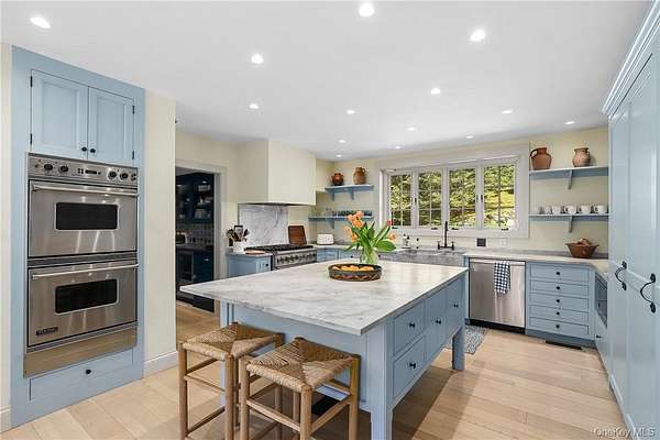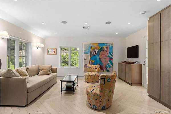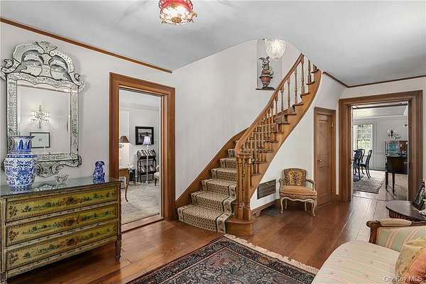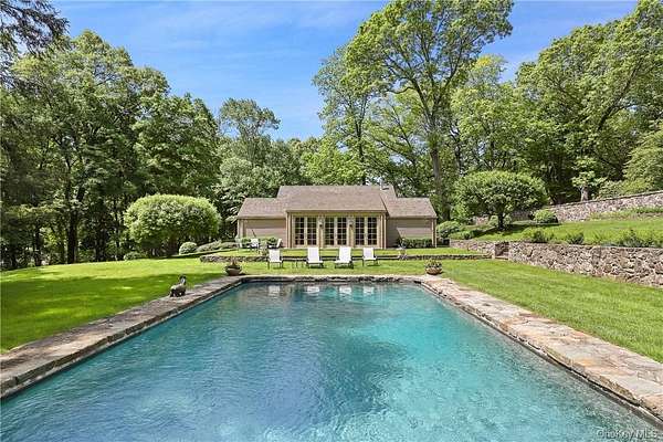 HOPE HILL. Nestled on nearly 20, graciously landscaped acres. Remarkable 1918 Center Hall Colonial Estate with a timeless elegance and old-world architecture. Named "Hope Hill" after World War II as an inspiration for peace. A true classic impeccably built with balanced proportions, a stately presence and period details that honor its historical roots while offering the comfort and functionality desired today. Stunning interior with well-proportioned rooms, substantial moldings, period hardware, random-width hardwood floors, French doors and four fireplaces. Center Entrance Hall with gracious curved staircase. Den with fireplace-perfect for working remotely. Ideal for elegant entertaining, beautifully scaled Living and Dining Rooms-both with fireplaces. Well-designed Country Kitchen open to Family Room. Luxurious Primary Suite with Sitting Room, fireplace and two Baths. Four additional Bedrooms plus Nursery. Media Room and Gym. Long, long drive to perfect privacy. Located in a foremost Bedford estate area with fenced paddocks and direct access to the Bedford Riding Lanes. Gorgeous estate with gently rolling lawns, incredible stone walls and terraces and incredible plantings. Rear terrace overlooking the Swimming Pool and the incredible Pool/Guest House with Great Room, Kitchen, Two Bedrooms and Spa Bath. Tennis Court and indoor squash court with basketball hoop. Garages for eight cars. Rich in character and thoughtfully designed for today's lifestyle, this home is a true embodiment of Colonial tradition and enduring quality. A remarkable offering!