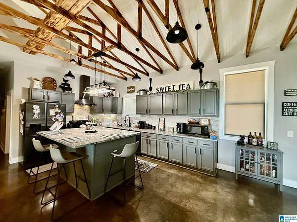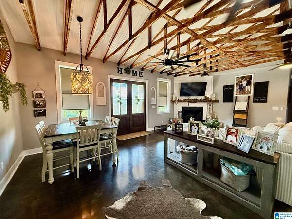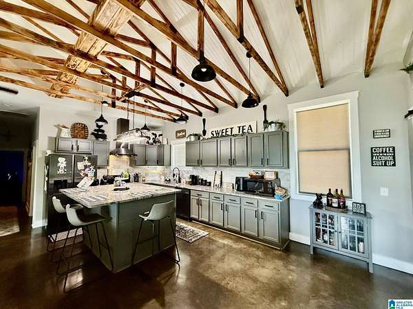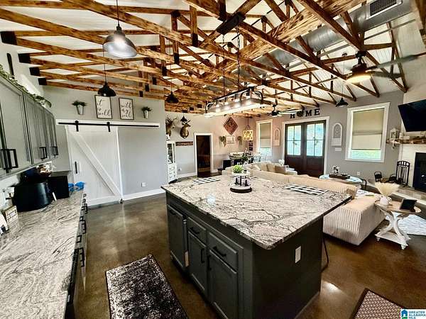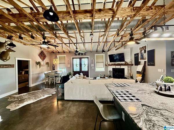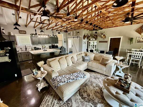 Est $1,933/moBarndominium STYLE Home located on Approximately 9 Acres ~ Large Front Porch that spans the front of the home. ~ 4 Bedrooms ~ 2 Baths ~ All High End Finishes ~ CONCRETE Floors ~ Exposed Trusses ~ Open Floor Plan with Split Bedroom Design ~ Master Suite with Spa Style Bath/Soaker Tub/Oversize Shower ~ Gourmet Kitchen features Stainless/Stone Countertops/Island/Barn Slider into Laundry/Mud Room ~ Great Room with Nice Wood Burning Fireplace with Shiplap Surround ~ Privacy with convenience!