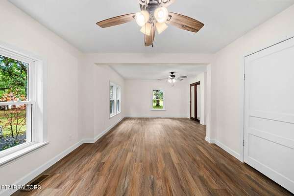 Peaceful Country Pleasure, This newly remodeled farmhouse sits on3.34 acres of land, with a stately iron fence with a grand gate entrance. As you drive in, you are greeted by the charm and elegance of mature trees, beautiful lawn and landscape that add to the peaceful ambiance of the property. Step inside to discover over 2000 square feet of beautifully designed living space featuring luxury vinyl plank flooring throughout. The farmhouse-style kitchen boasts new custom-built cabinets, farmhouse sink, new stainless-steel appliances, new fixtures, and high-end finishes that elevate the space to new heights. This home offers a comfortable layout with three spacious bedrooms, two full baths, and two half baths for added convenience. The main bedroom has 2 closets and features an en-suite bath with claw foot tub and separate step in shower. The sunroom provides a cozy retreat, perfect for relaxation and enjoying the natural light streaming in to enjoy all year long with a freestanding fireplace for added comfort. Step out onto the large back deck to admire your unrestricted land with plenty of room for gardening and outdoor activities. Whether you're looking to host gatherings or simply unwind in tranquility, this farmhouse offers the perfect blend of style and comfort. There is plenty of storage in the upstairs cubbies adjoining the 3rd bedroom. The garage can house 2 large vehicles, and the farm shed has room for other toys or garden tools. NO RESTRICTIONS, Horses welcome, raise chickens or park your RV. Don't miss the opportunity to make this charming farmhouse your own - schedule a showing today and experience the beauty and elegance of this property conveniently located on US Hwy with easy access to I-40, come see what the Cumberland Plateau has to offer.