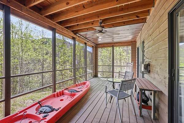 Experience ultimate mountain serenity in this turn-key Nantahala cabin, tucked away at the end of a private road for unmatched seclusion and overlooking picturesque Queens Creek Lake. This thoughtfully designed retreat blends comfort with adventure, just minutes from the Nantahala Outdoor Center and the world-renowned Nantahala River for fishing, rafting, and outdoor exploration. Inside, the open-concept living space is filled with natural light from expansive windows that perfectly frame the tranquil water views. Multiple pass-through fireplaces create a warm, inviting atmosphere—ideal for relaxing after a day outdoors. Step outside to expansive decks designed for true mountain living—unwind in the hot tub, entertain guests, or gather around the fire pit under the stars. The private primary suite offers its own screened porch with breathtaking lake views, creating a peaceful escape within the home. Sold fully furnished and complete with a kayak, this move-in-ready property is the perfect full-time residence, vacation getaway, or income-producing rental. Start enjoying the quiet beauty and adventure of Western North Carolina from day one.