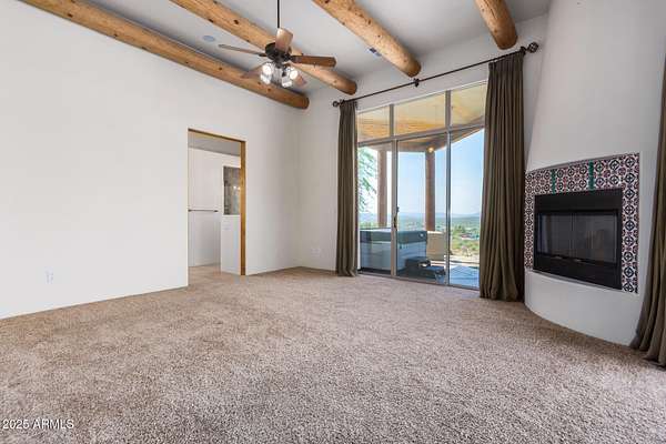 Gorgeous Custom Home! Stunning Panoramic Views on 2 plus acres. The hillside home features large picture windows with views of the national forest. The great room has 16 foot ceilings with viga poles and a fireplace. The cabinets and doors are beautiful natural alder. The master bedroom has amazing views also,, a fireplace, 2 patios, a grand bathroom, and spacious closet. Split floorplan with 2 guest bedrooms plus a full office with built in desk and shelves. Open the doors and enjoy the views! Outdoor relax on one of the 5 patios or relax in the jacuzzi tub! Car buffs? Large detached 1200 immaculant 4 car garage/shop with pefect epoxy floors. You have rv parking with hookups on the side of the garage. Seller may consider short carryback.OWNED SOLAR! Come out, enjoy the views from any roo